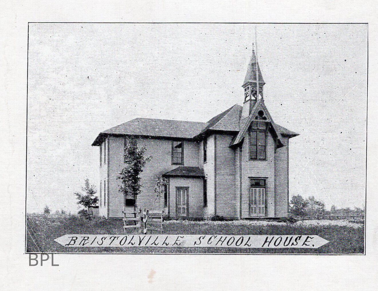 Bristolville School House. 1877 a new school district school was built near the Pioneer Cemetery. There were still several district schools in the township. A centralized school was not built and opened until September 12, 1916.Cataloged By