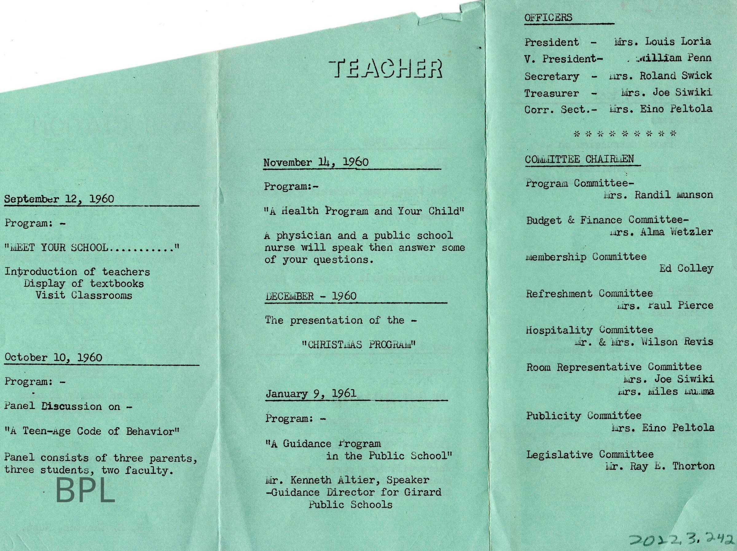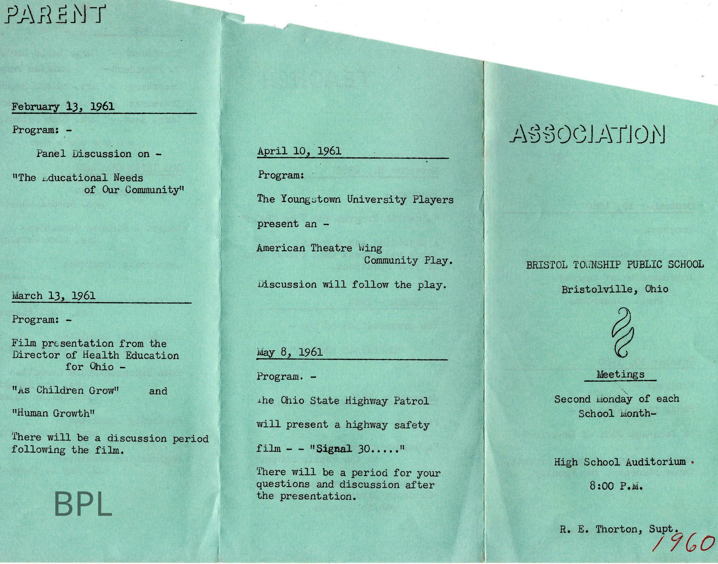 Calendar year of 1961 for Bristol Parent Teachers Association ProgramCataloged By