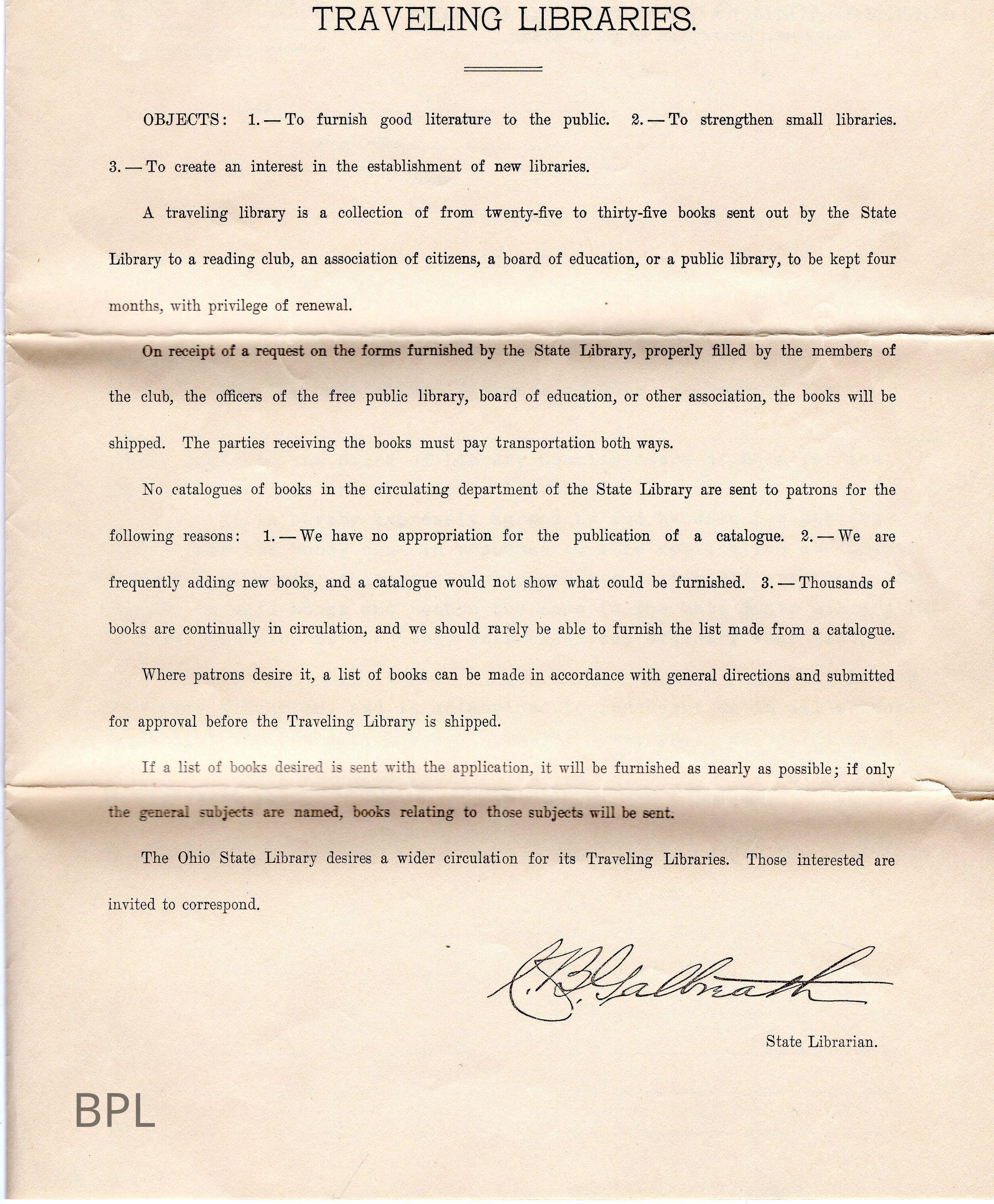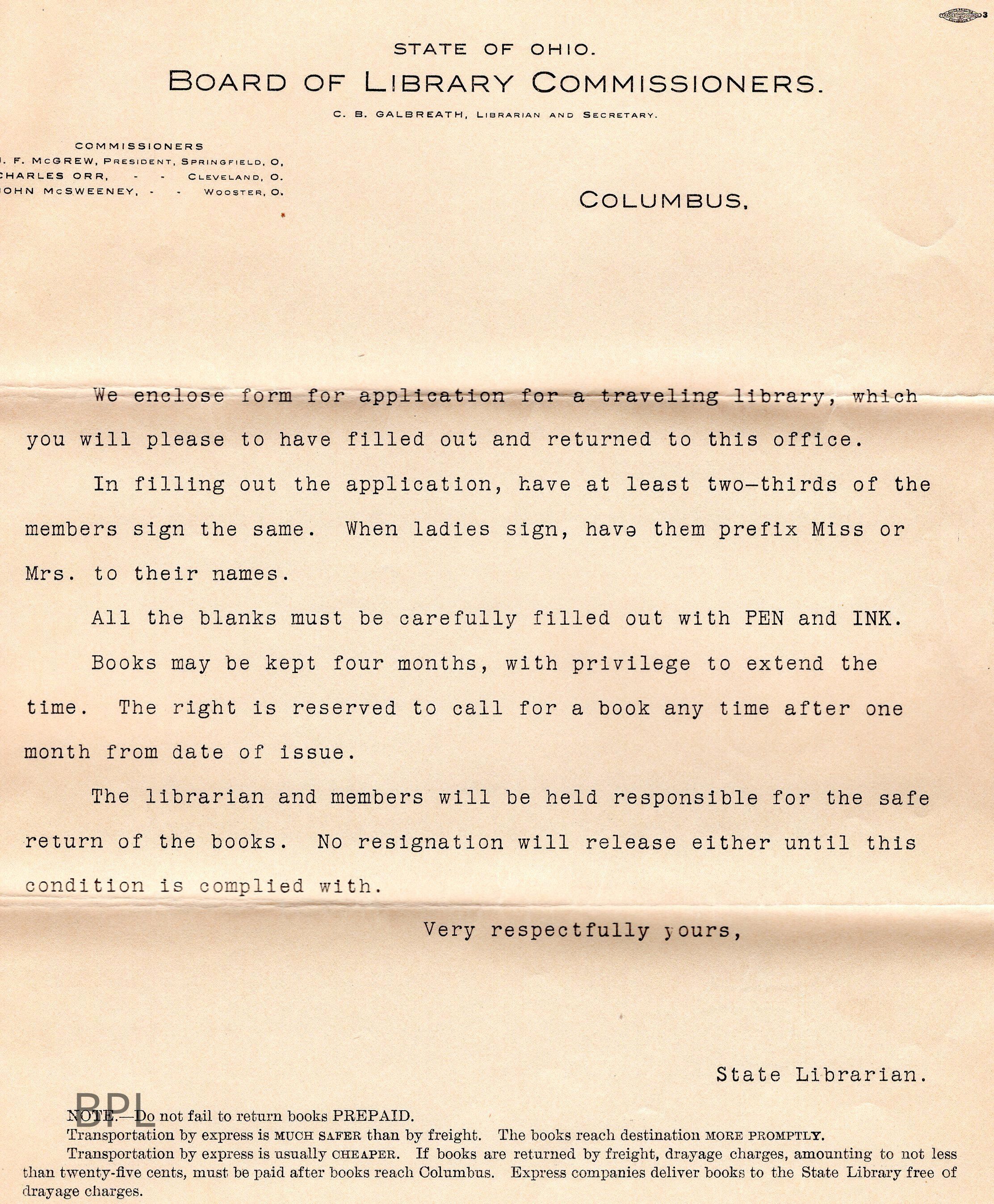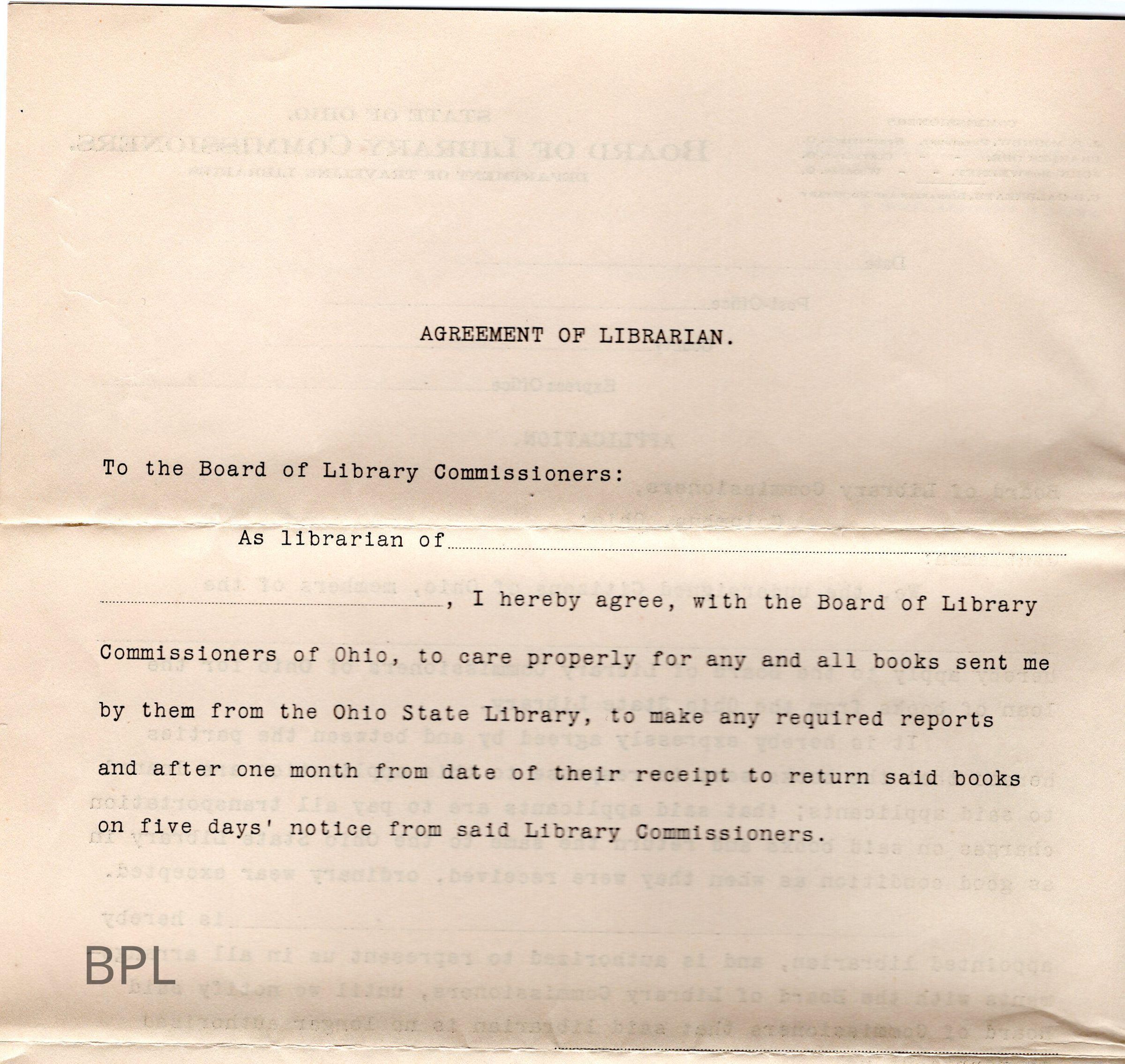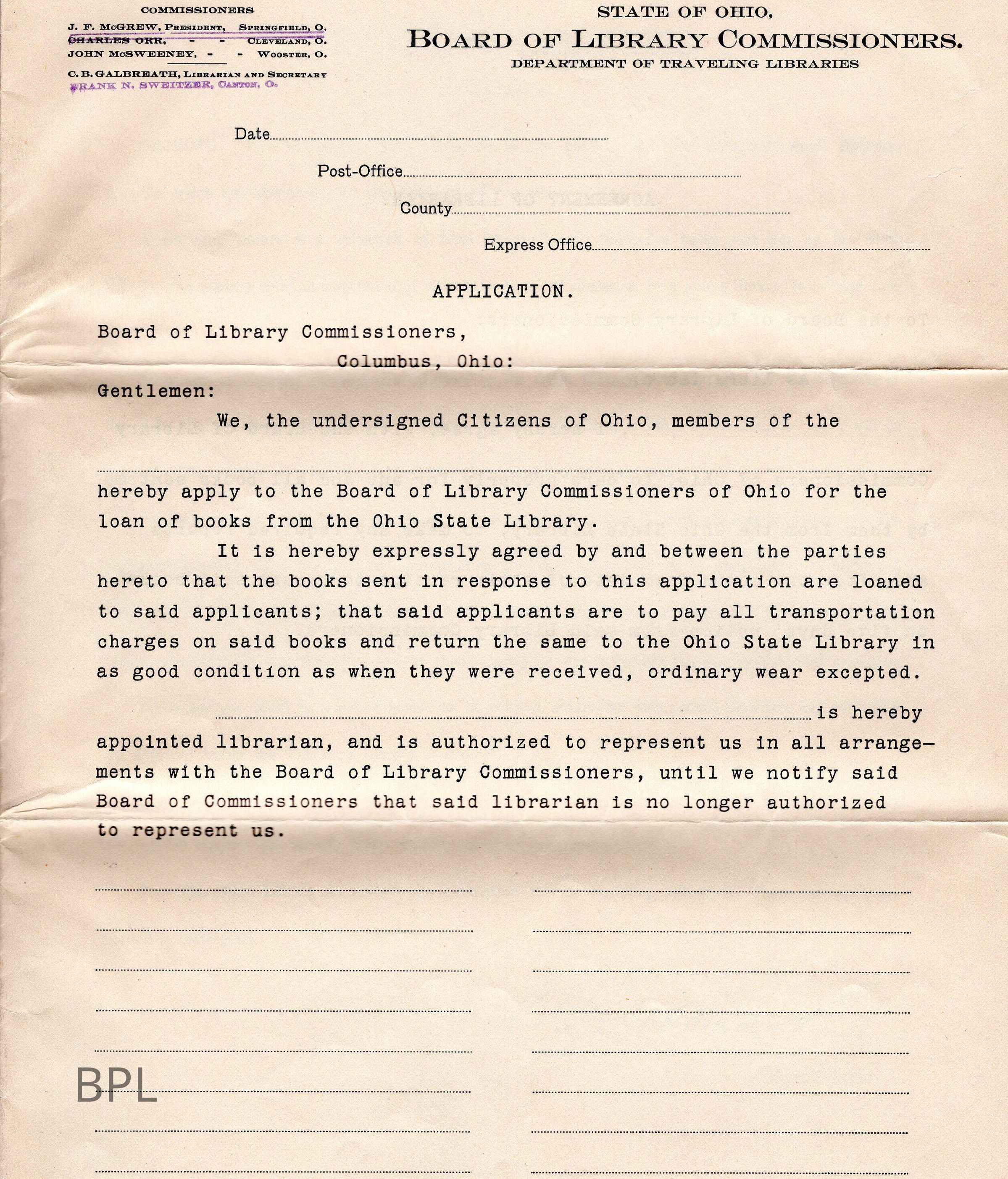 Application from State of Ohio Borad of Library Lending LibraryCataloged By