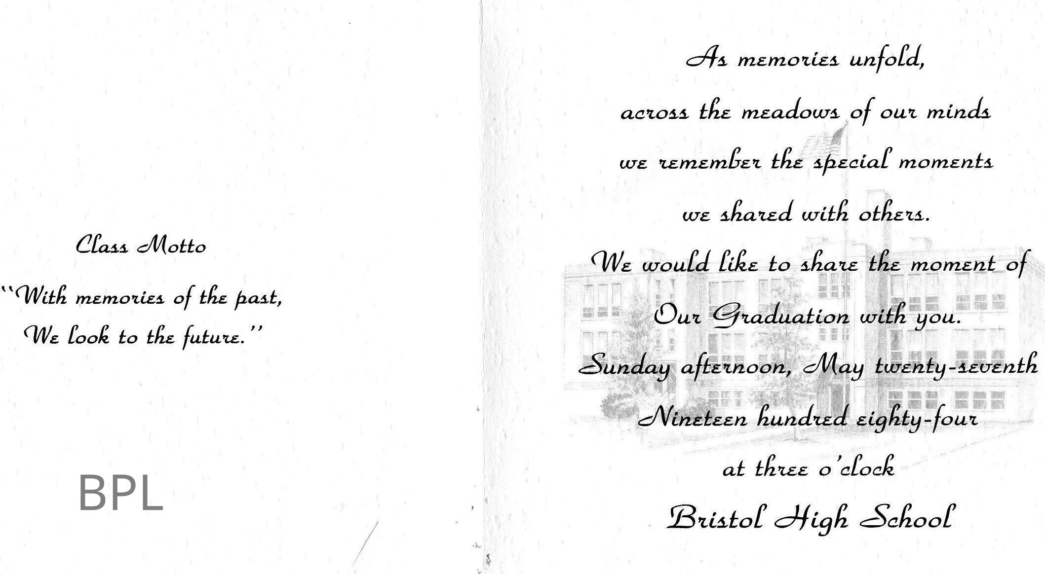 1984 Bristol High School Graduation AnnouncementEntry/Object ID