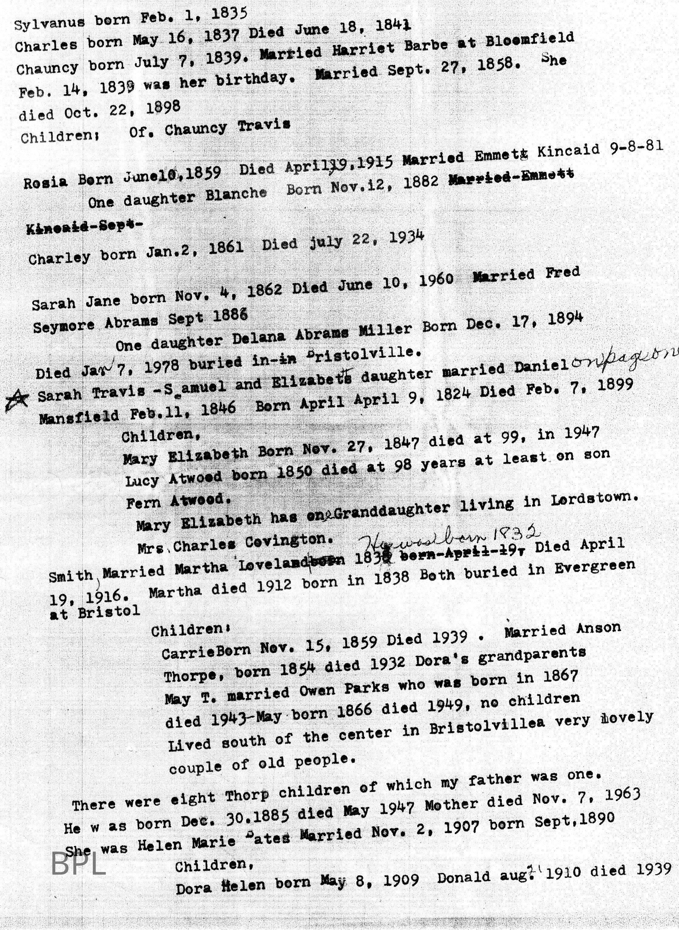 Travis, Samuel, Travis, Sylvanus, Wirebaugh, Dora H.Notes