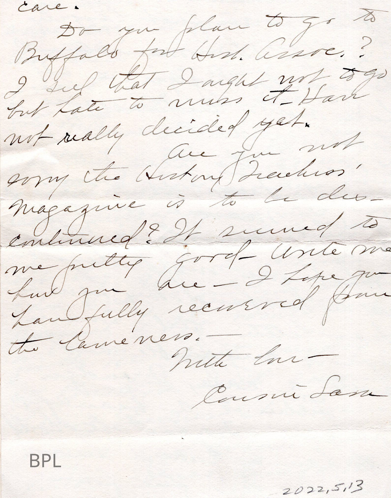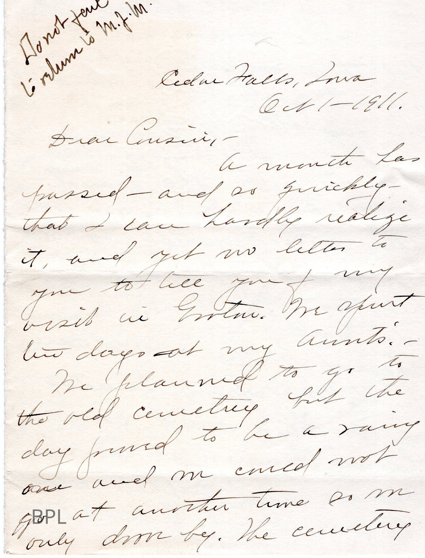 Letter to Probably to Martha Maltby October 1, 1911, from a Cousin Sara??Cataloged By