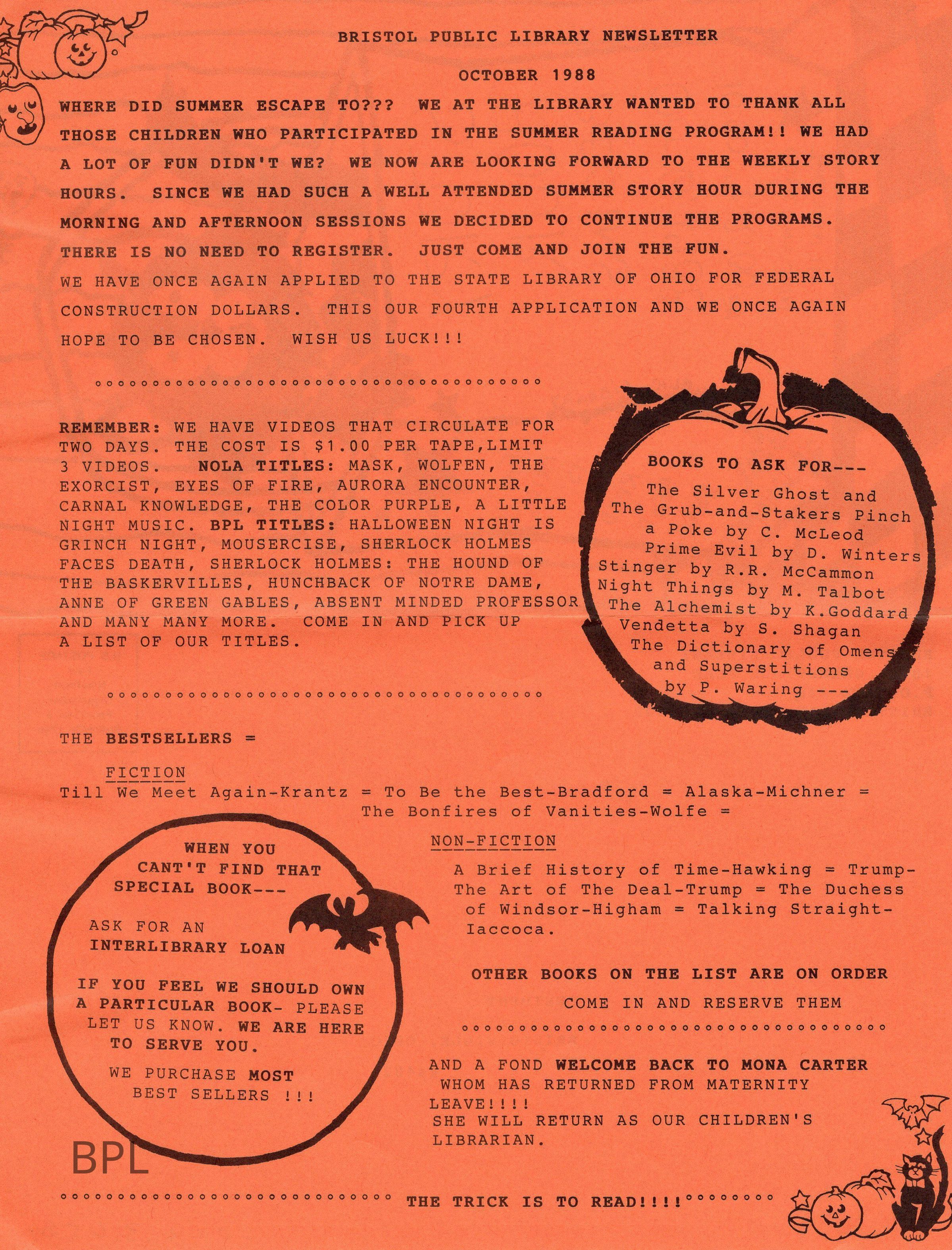 Mailer, Bristol Public Library, October, 1988Cataloged By