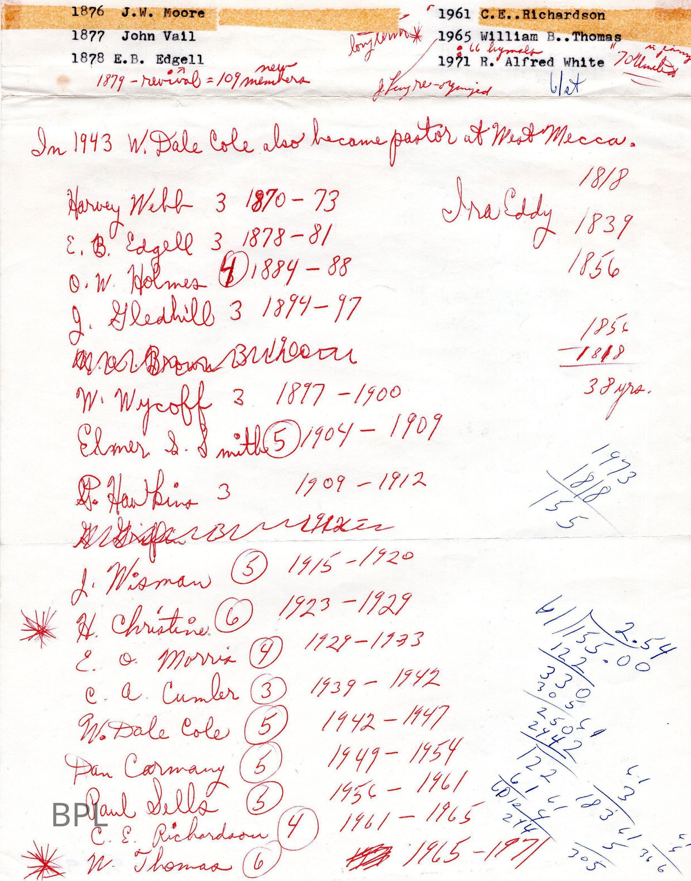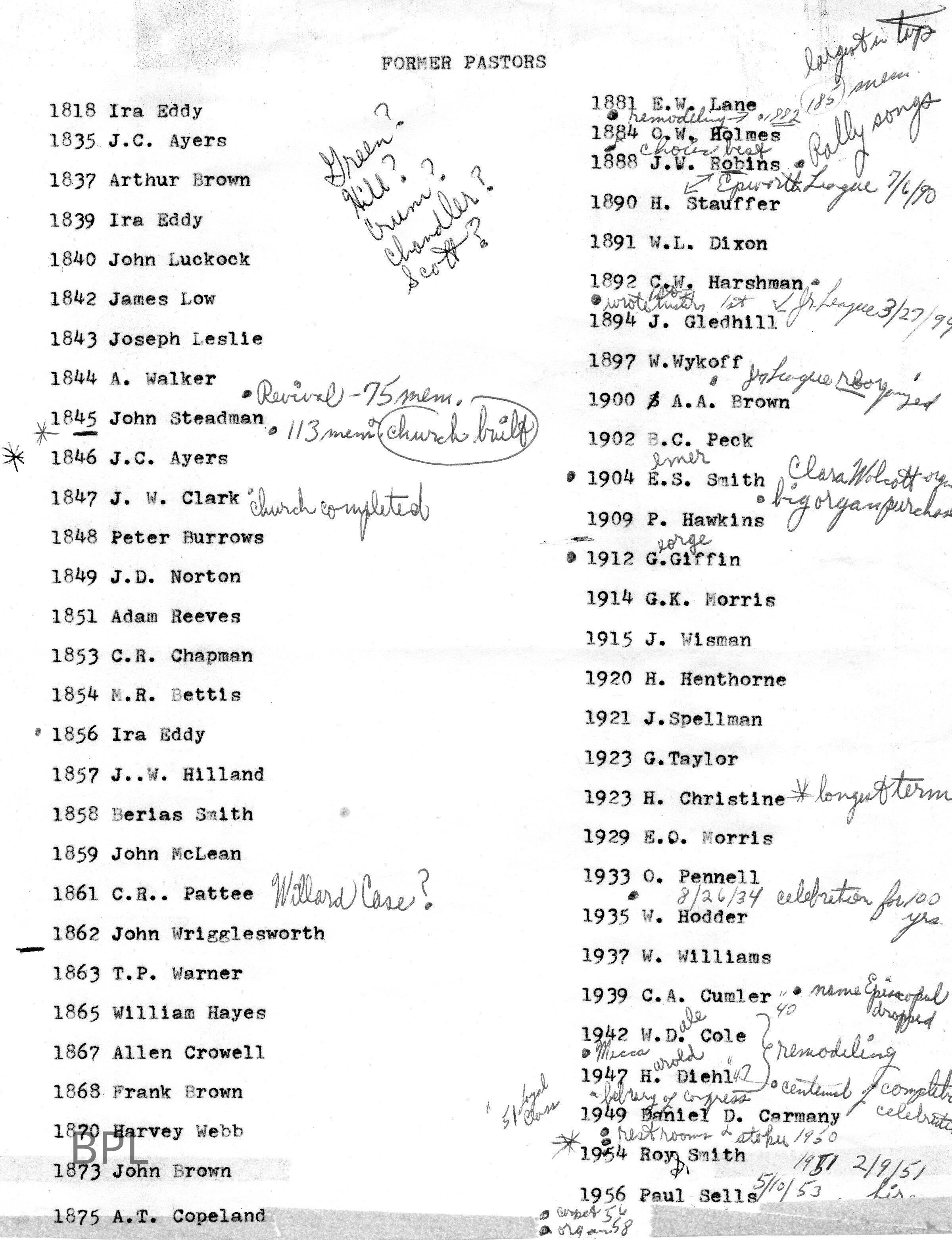 List of Pastors of Bristolville, Ohio Methodist Church from1818 through 1971Cataloged By