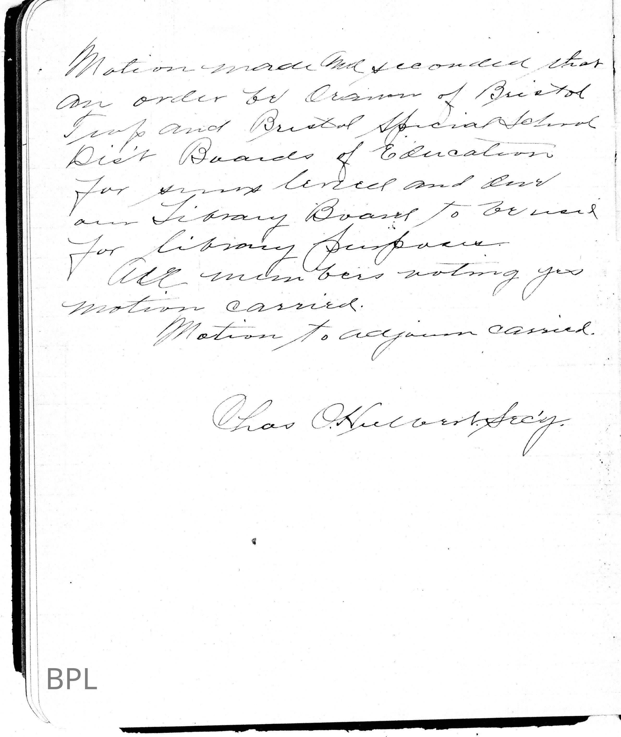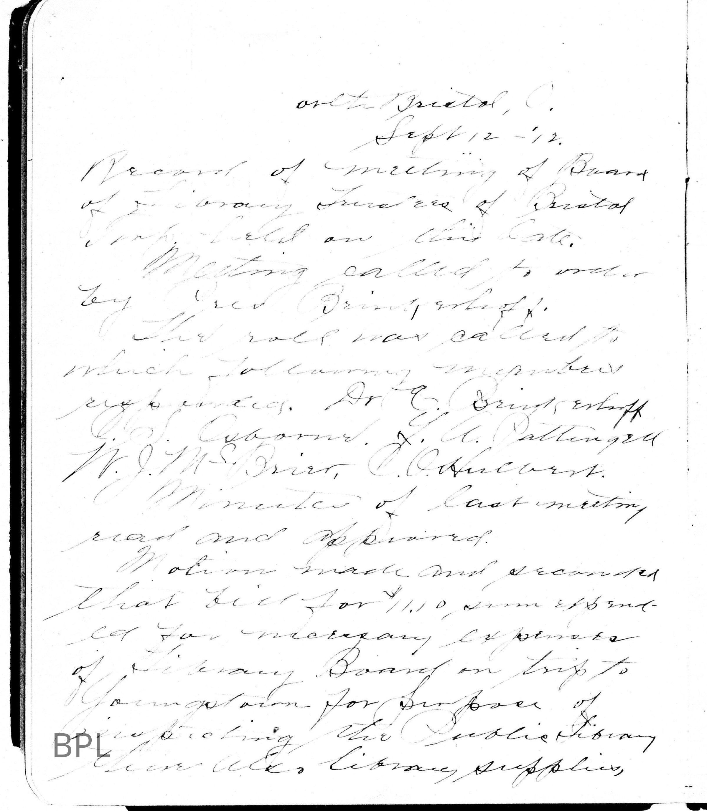 Minutes of Bristol Library Trustees of September 12, 1912, of payment of billsCataloged By