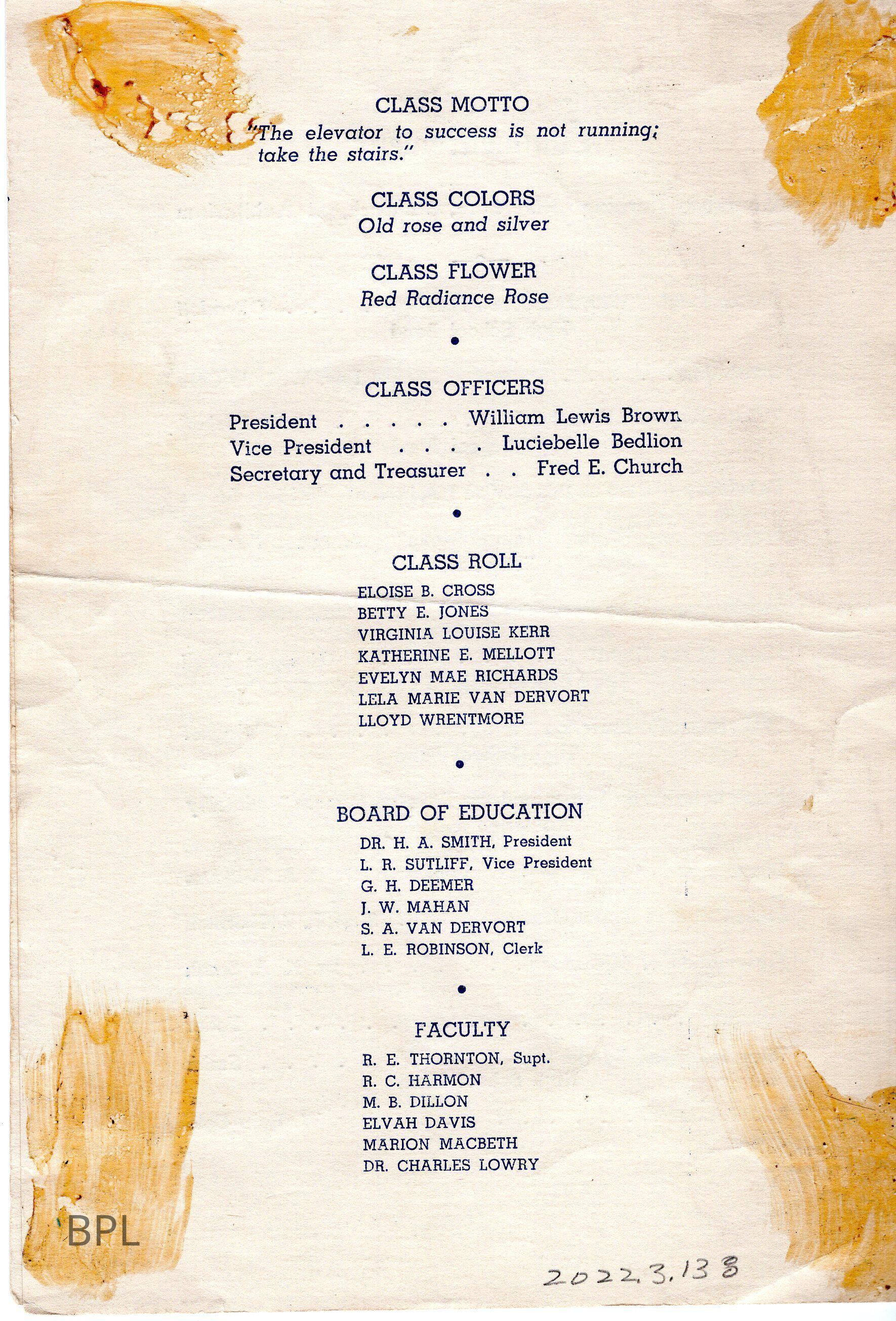 Bristol School, Cole, W. Dale, Rev, Brown, William, Mellott, Katherine, Williams, D.A. Dr., Thornton, R. E., Smith, H. A. Dr., Bedlion, Luciebelle, Church, Fred E., Cross, Eloise B., Jones, Betty B., Kerr, Virginia, Louise, Richards, Evelyn Mae, VanDervort, Lela Marie, Wrentmore, Lloyd, Smith, H. A. Dr., Sutliff, L.R., Deemer, G.H., VanDervort, S.A., Robinson, L. E., Harmon, R.C., Dillon, M. B., Davis, Elva, Macbeth, Marion, Lowry, Charles Dr.