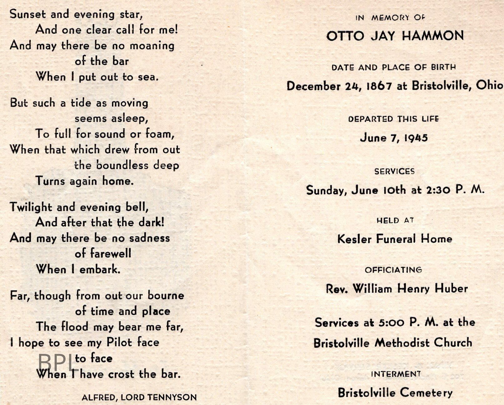 Memorial program for Otto Jay Hammon, June 10, 1945Cataloged By