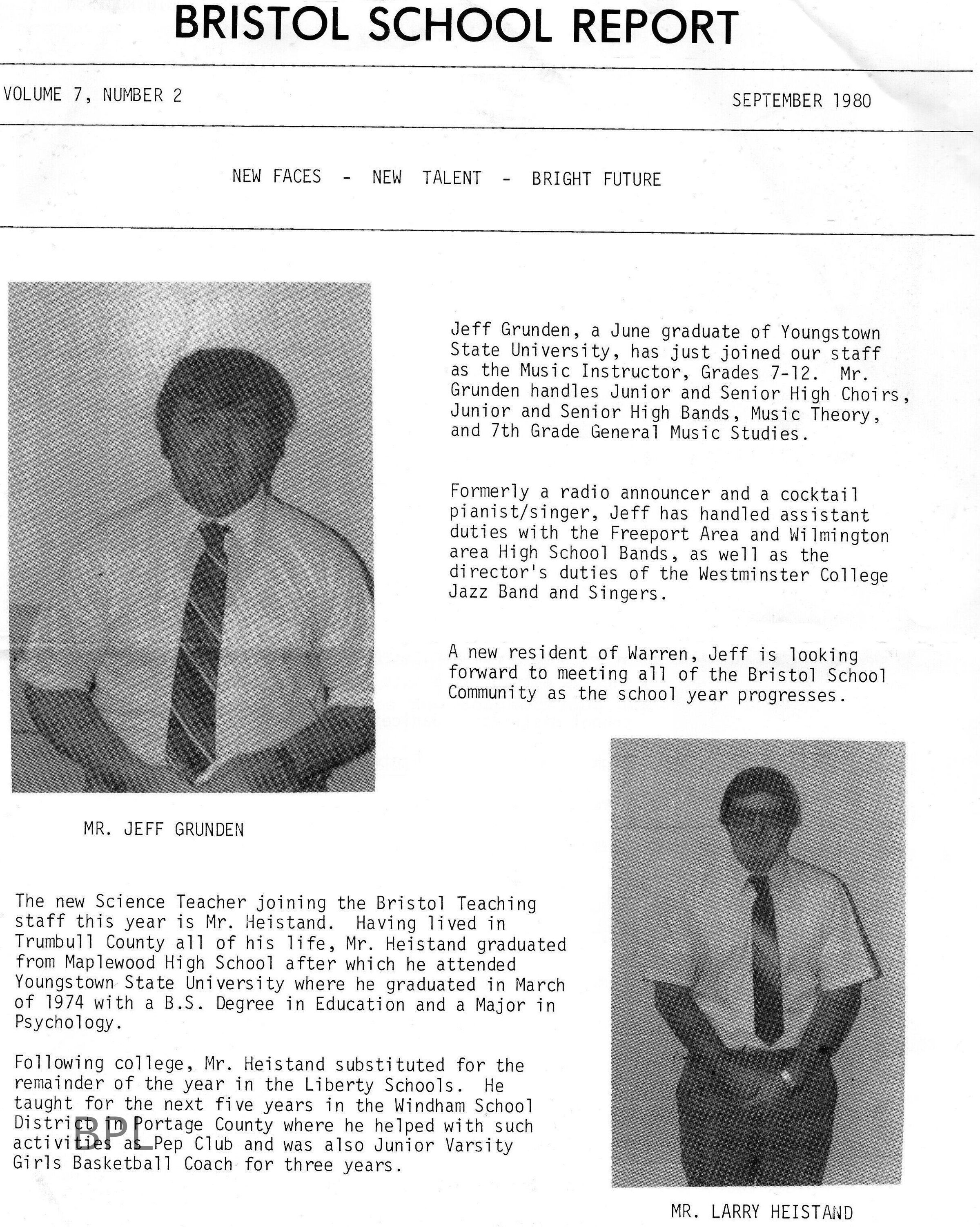 Bristol School, Heistand, Larry, Grunden, Jeff