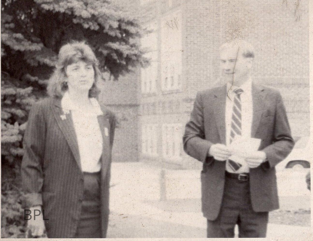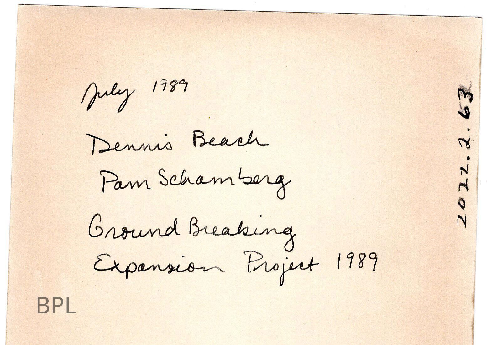 Bristol Public Library Photo with Dennis Beach, President of Library Trustees and Pam Schamberg, librarian at groundbreaking expansion project, July 1989