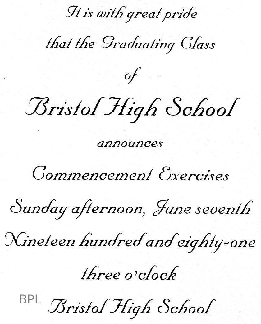 Bristol High School Graduation Announcement of 1981Cataloged By