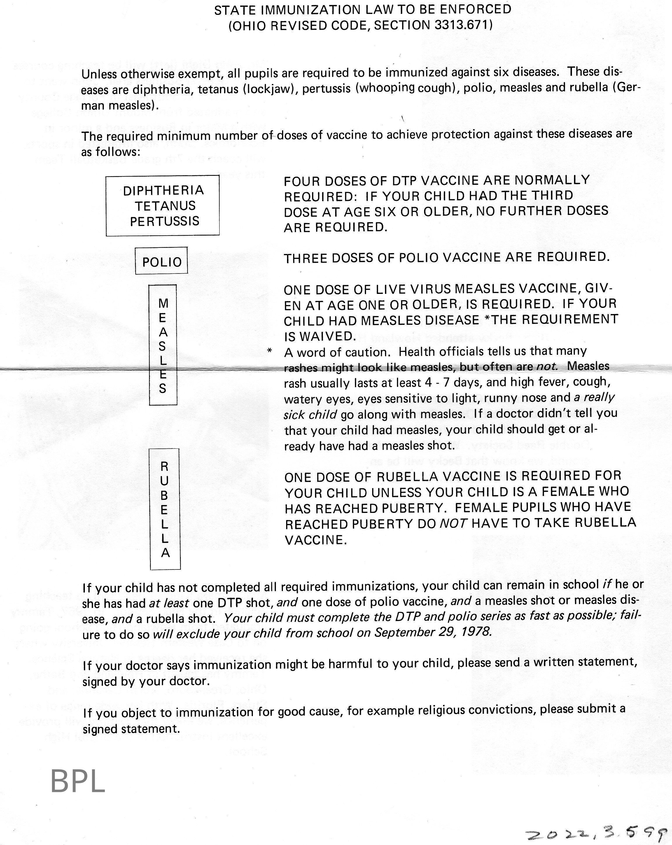 Flyer Bristol School for New Teachers Information, August 1978 and Immunization LawsCataloged By