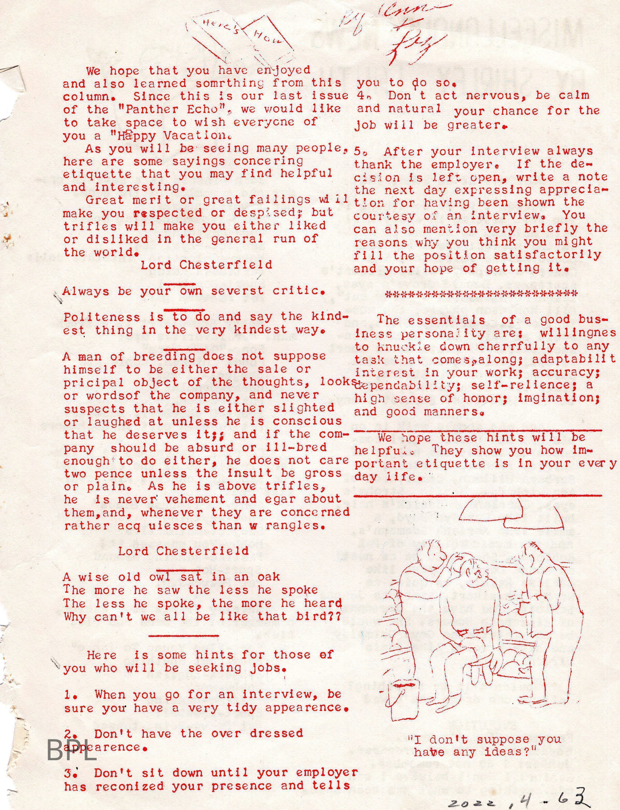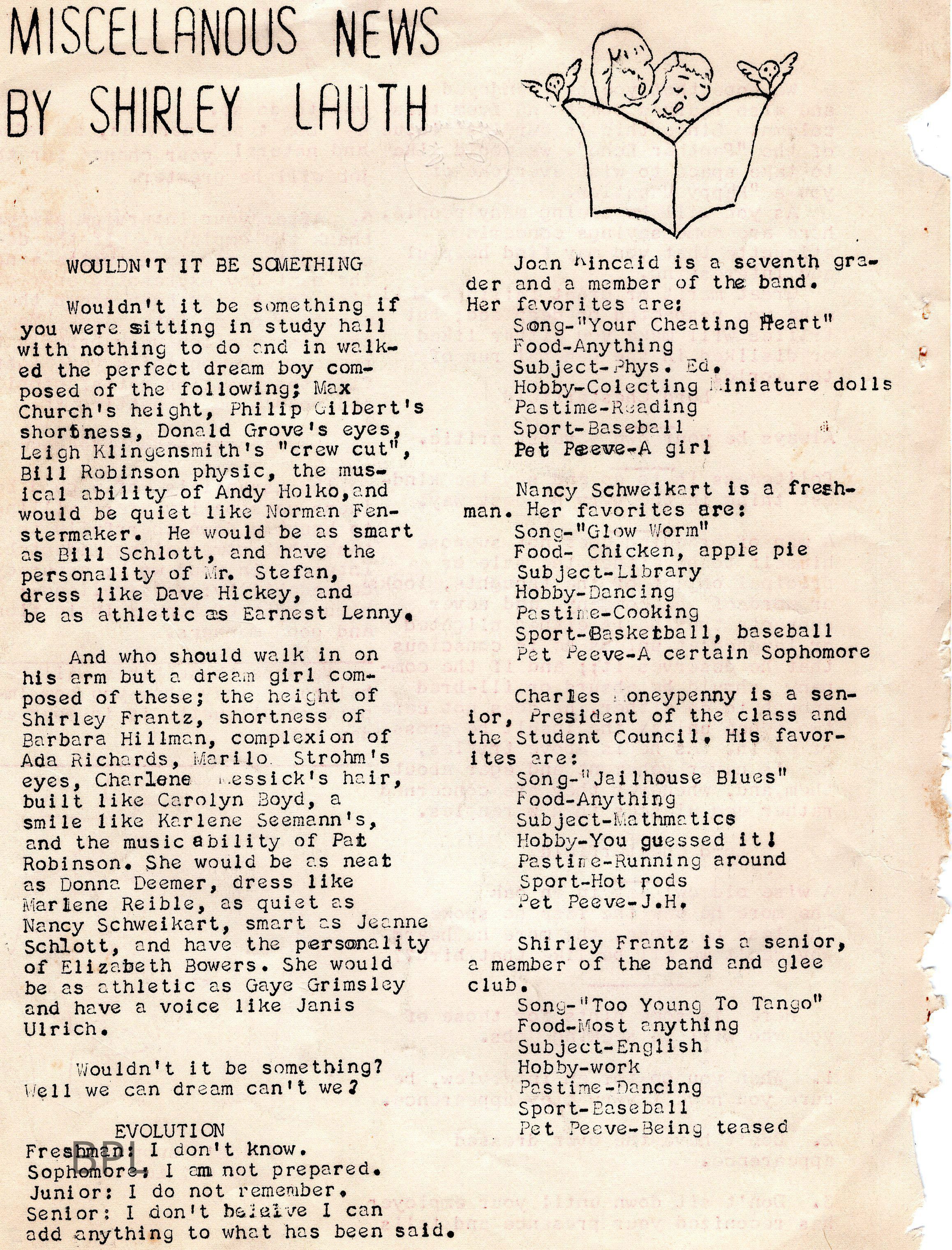 Partial 1950's Bristol School Paper " Highlights"Cataloged By