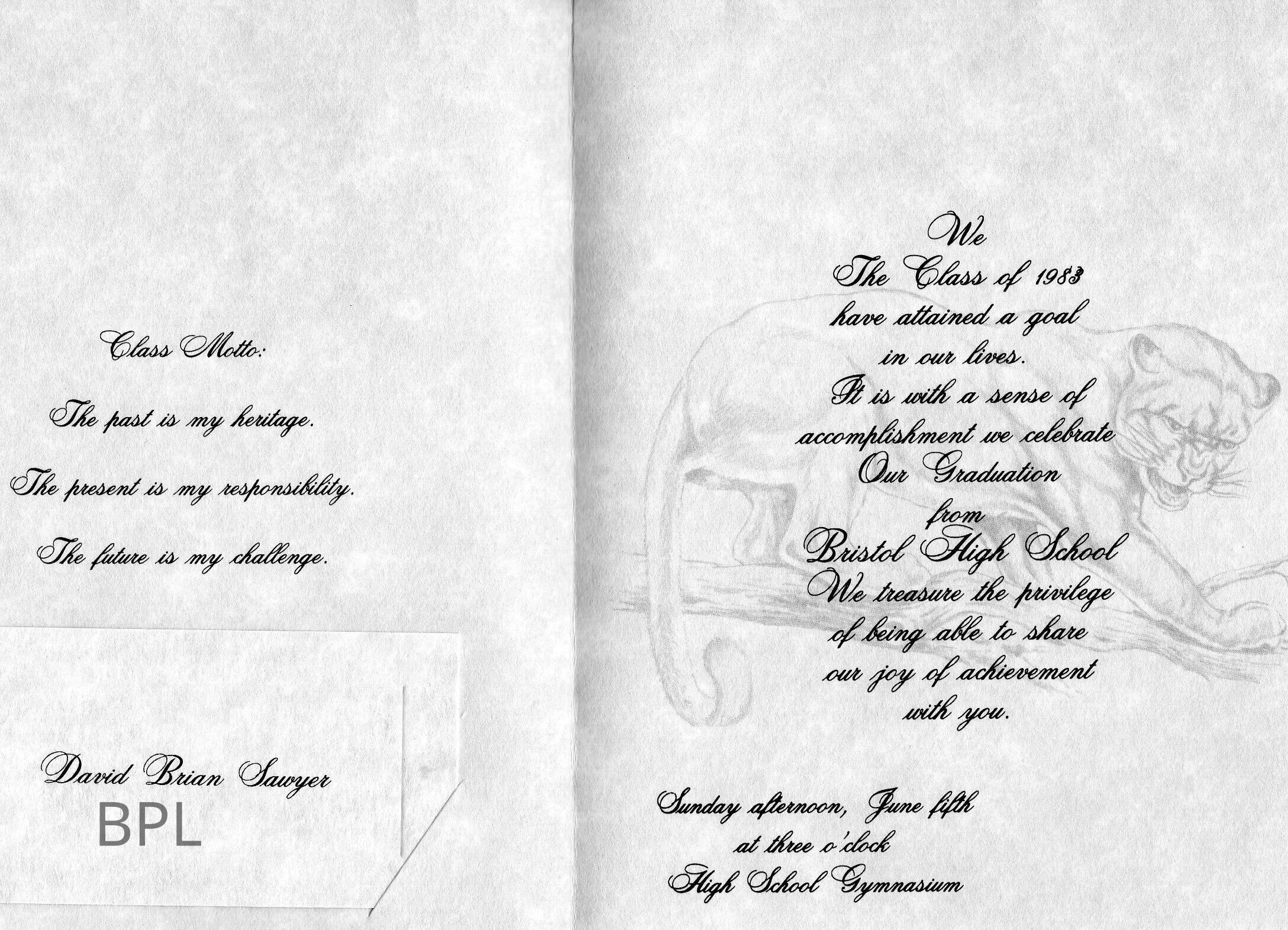 1983 Bristol High School Graduation announcement of David Brian SawyerCataloged By