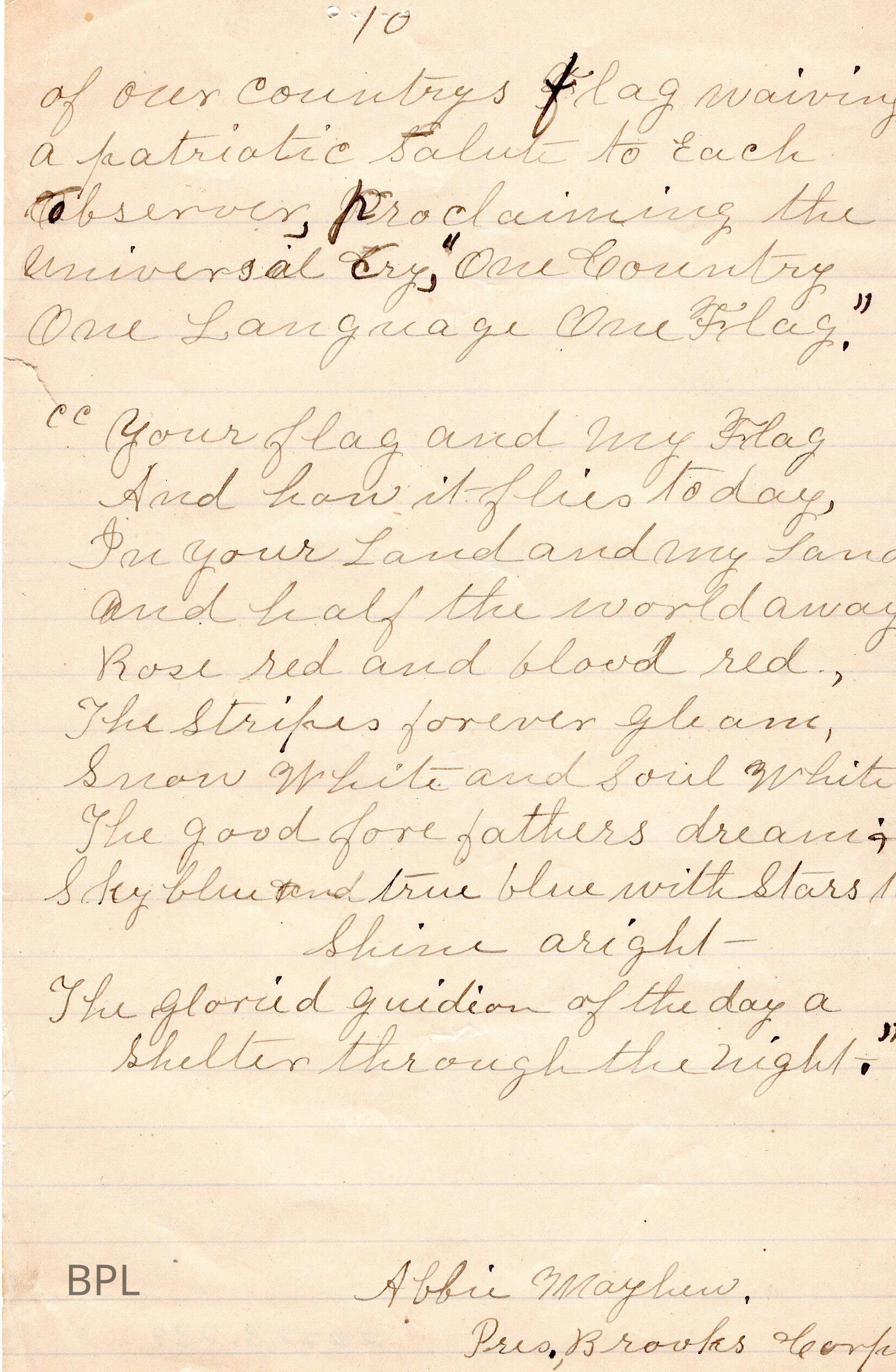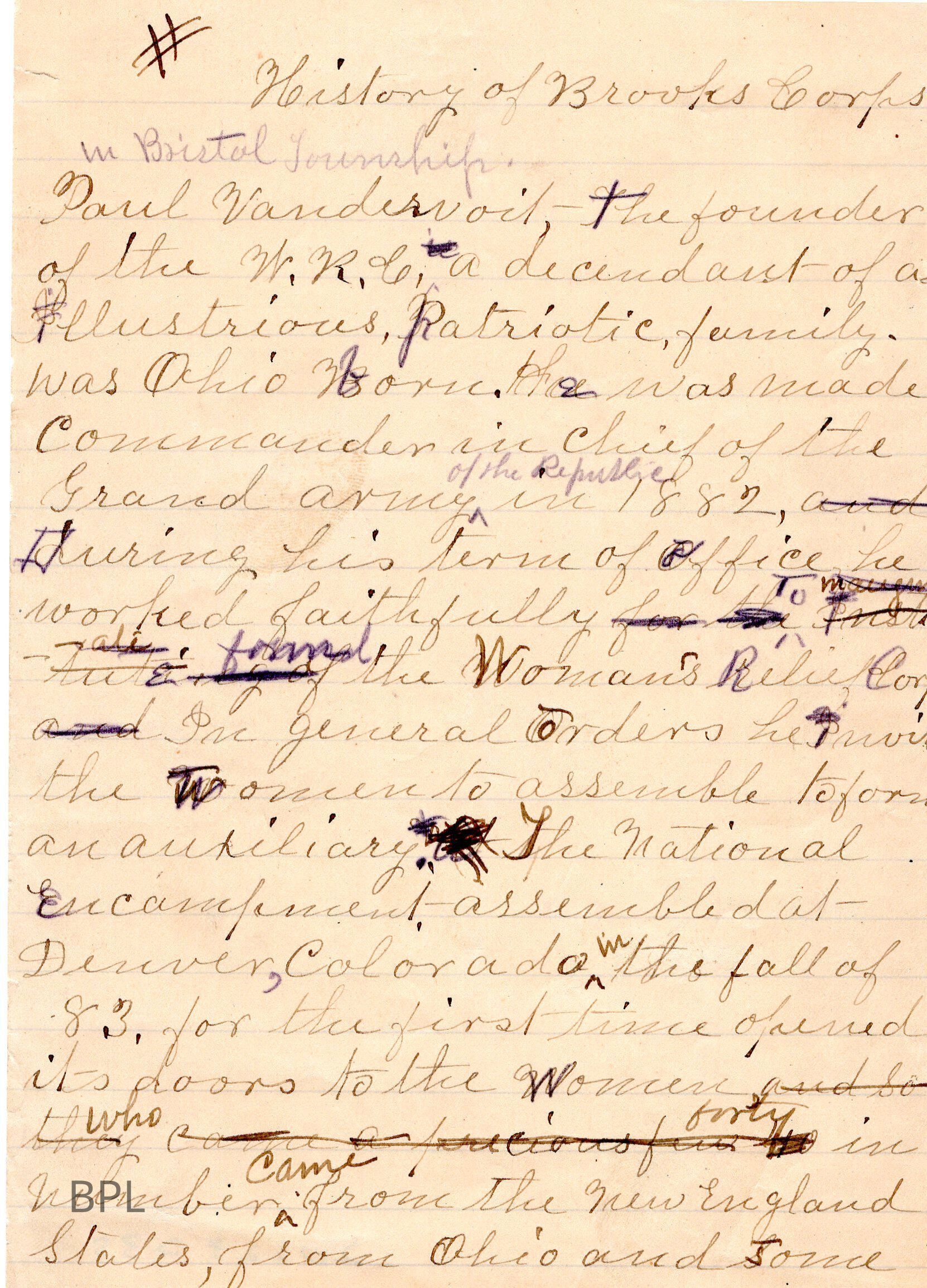 Brooks Corps, Woman's Relief Corps, Grand Army of the Republic, Sloan, Stella, Mrs., Mayhew, Abbie, Brooks, Charles A.Research Notes