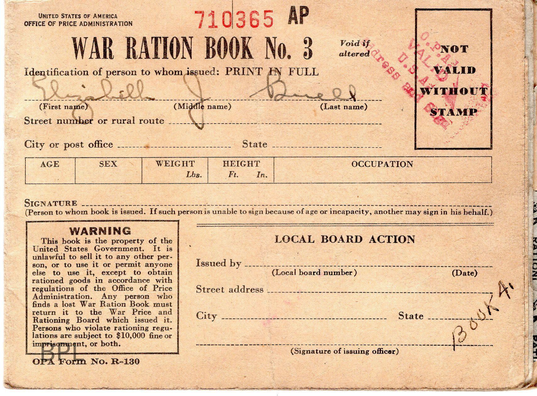 WW11 War Ration book of Elizabeth J. Buell.Cataloged By