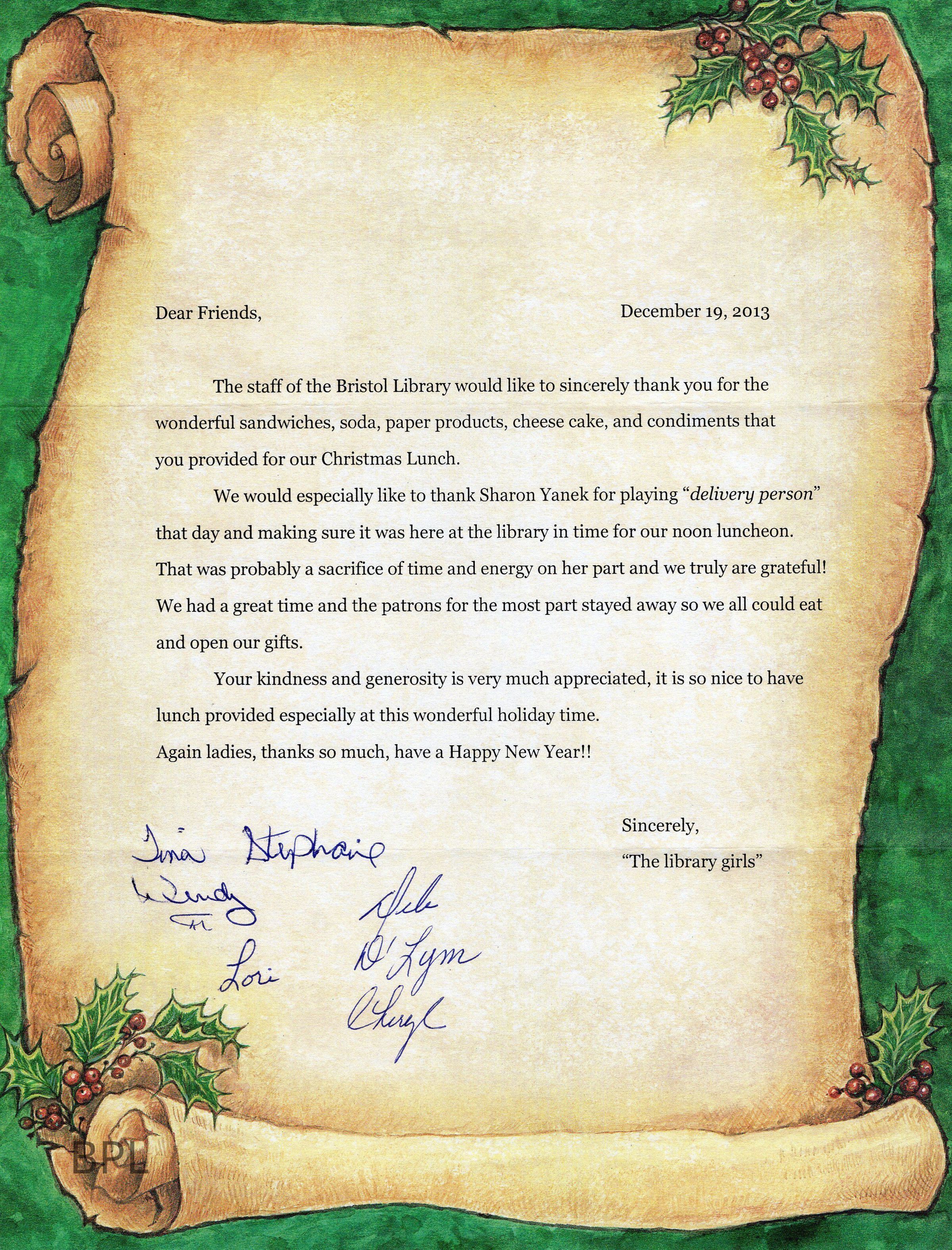 Letter from Bristol Public Library Staff to Friends of B.P. L, December 19, 2013 for Christmas lunch