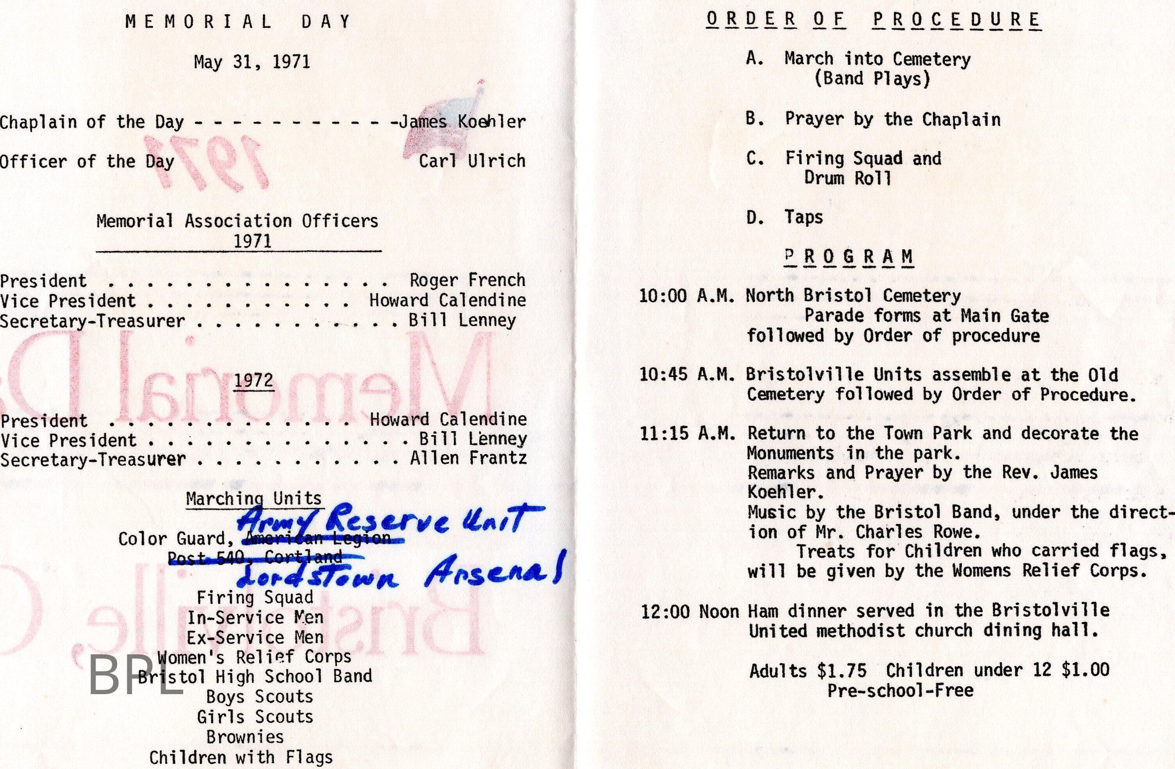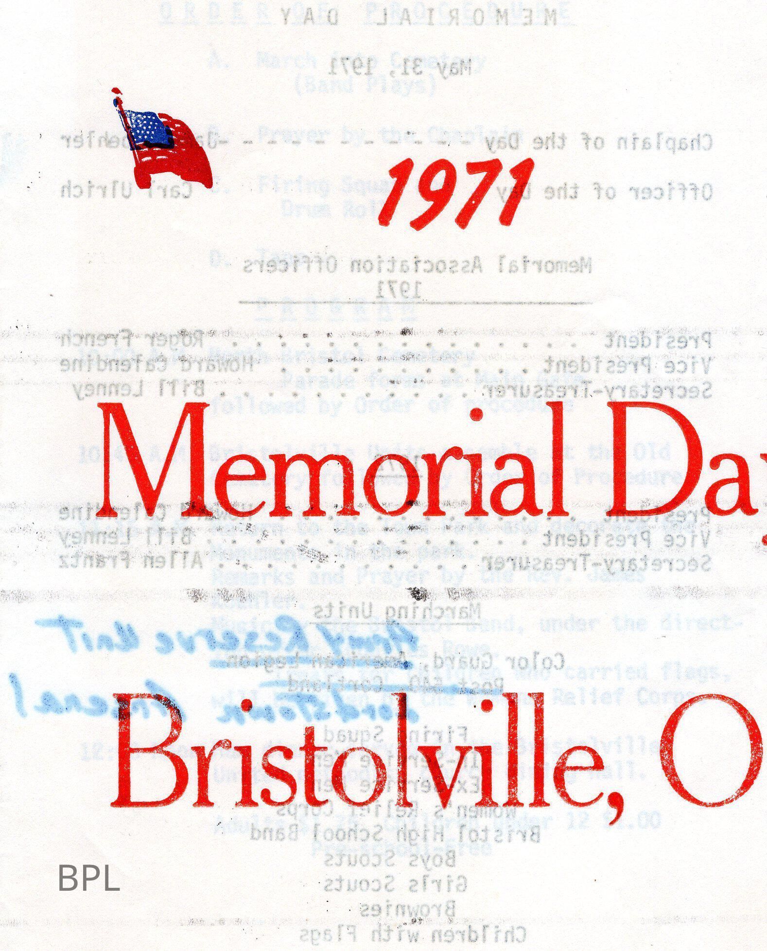 Memorial Day program, Bristolville, Ohio, 1971Cataloged By