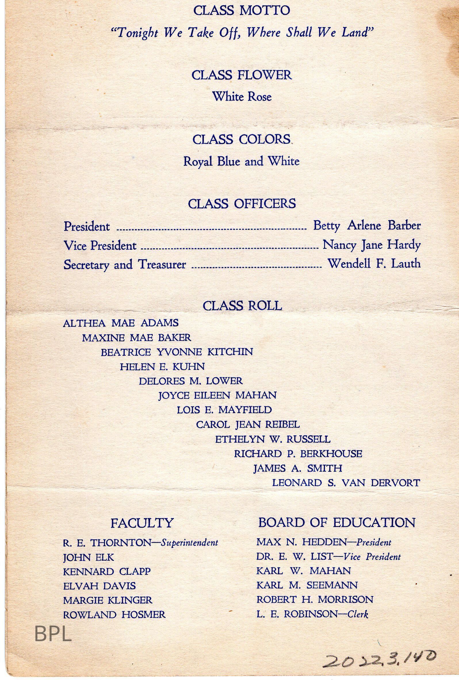 Bristol School, Thornton, R. E., Whitmore A.C. Rev, Diehl, Harold Rev, Klinger, Margie, Barber, Betty, Ramsey, E. C., Hedden, Max N., Lauth, Wendell, Hardy, Nancy Jane, Adams, Althea Mae, Baker, Maxine Mae, Kitchen, Beatrice Yvonnne, Kuhn, Helen E., Lower, Delores M., Mahan, Joyce Eileen, Mayfield, Lois E., Reibel, Carol Jean, Russell, Ethelyn W., Berkhouse, Richard P., Smith, James A., VanDervort, Leonard S., Elk, John, Clapp, Kenneth, Davis, Elva, Hosmer, Rowland, Seemann, Karl, Mahan, Karl, Morrison, Robert H, Robinson, L. E.