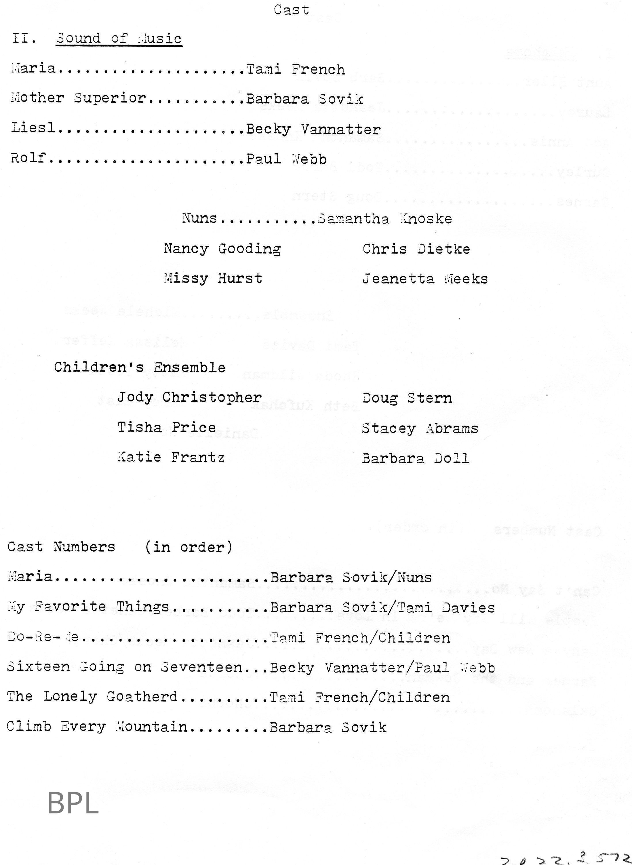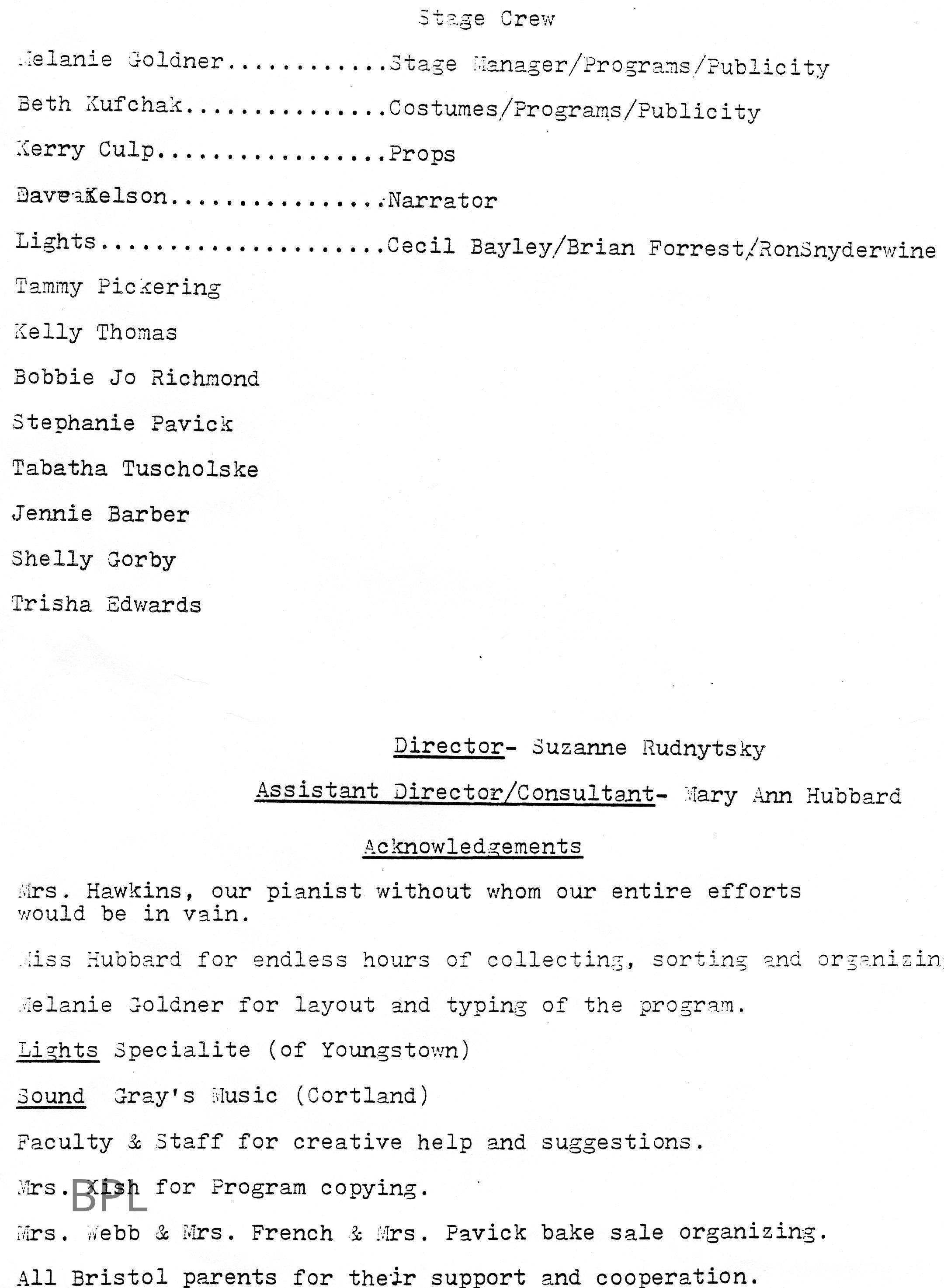 Program, Bristol High School Choir Musical ReviewCataloged By