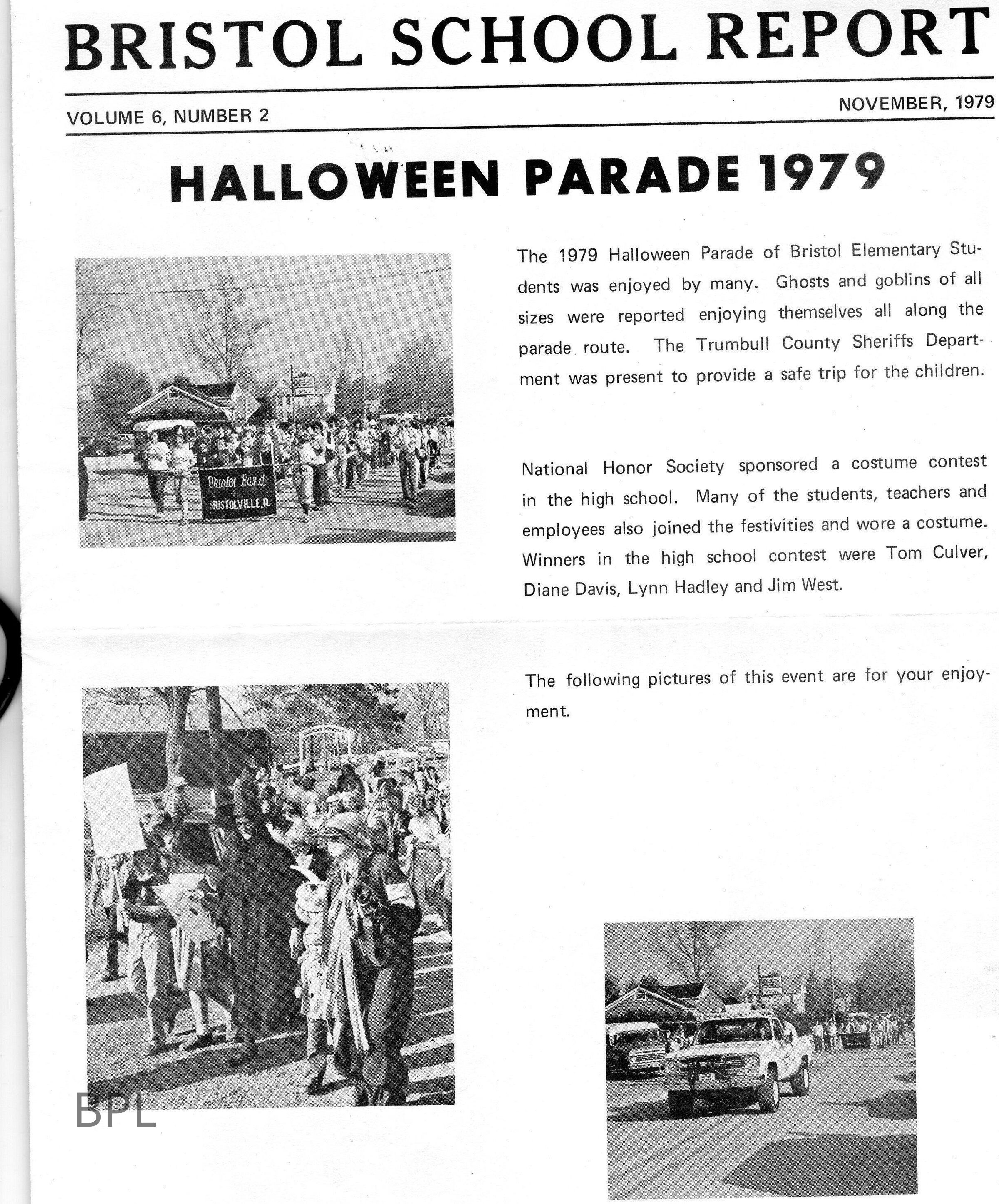 Bristol School Report, November, 1979 about Halloween ParadeCataloged By