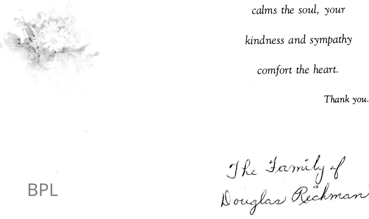 Thank you note from Douglas Richman family to Dr. and Mrs Marshall Hubbard, May 1982Cataloged By