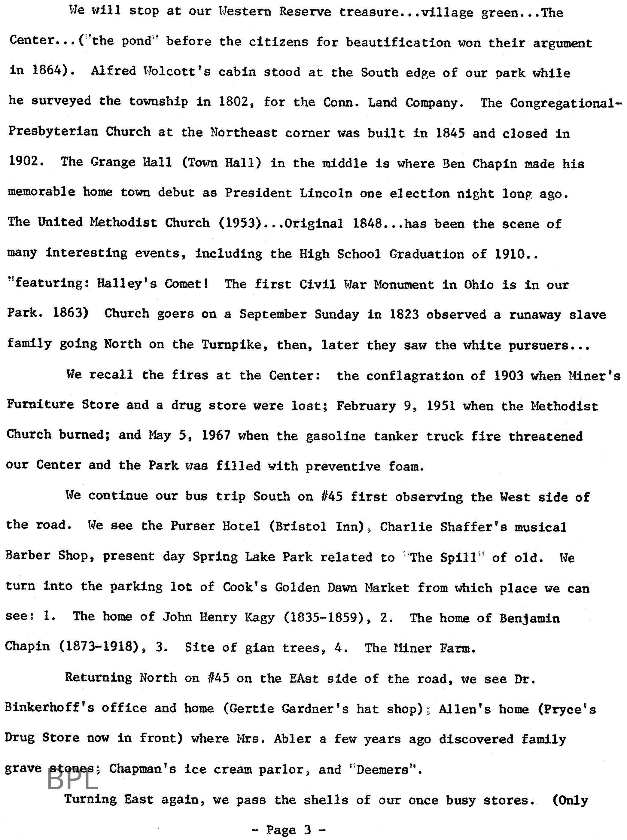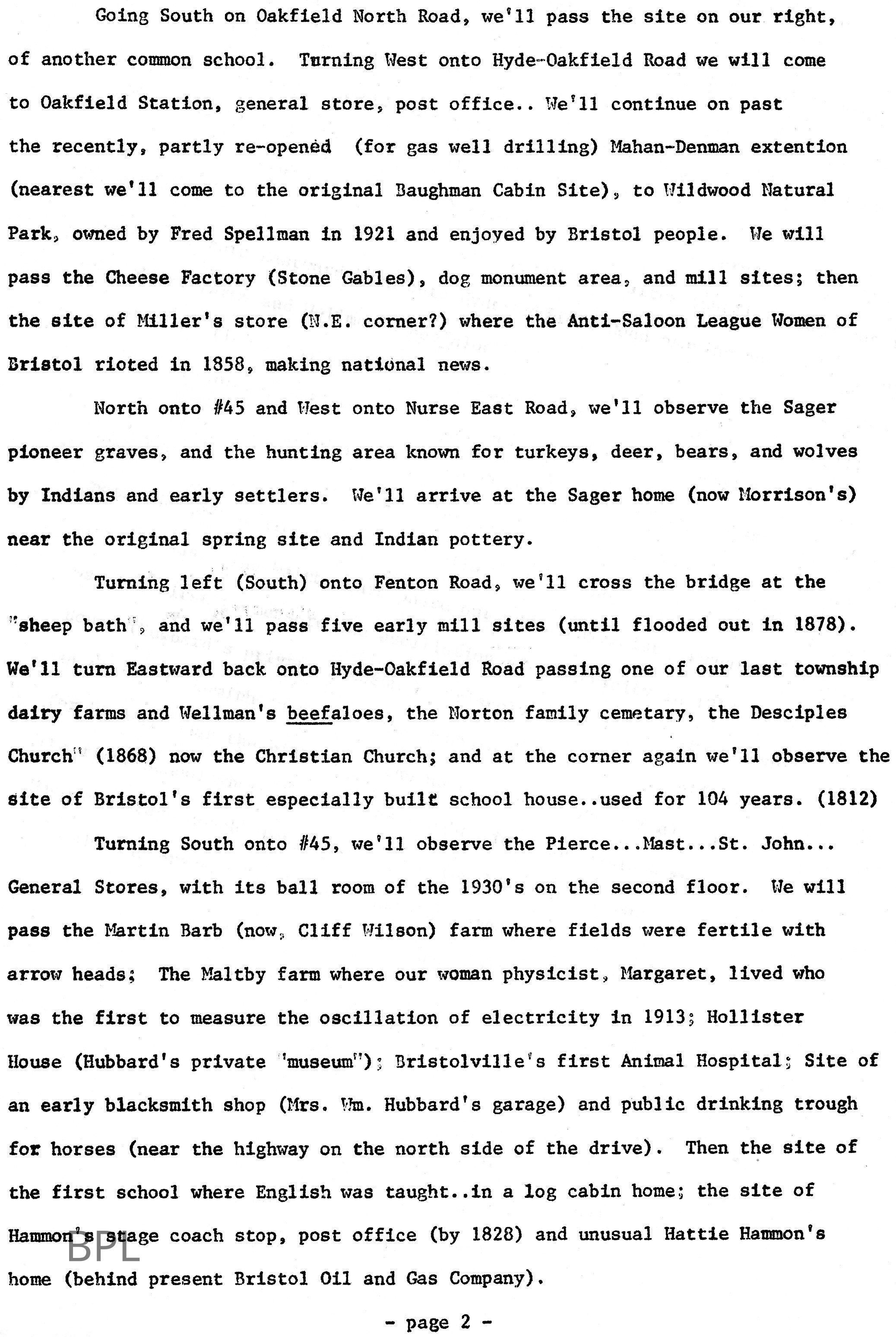 Historical Tour Bristolville, Oh, 1977Entry/Object ID
