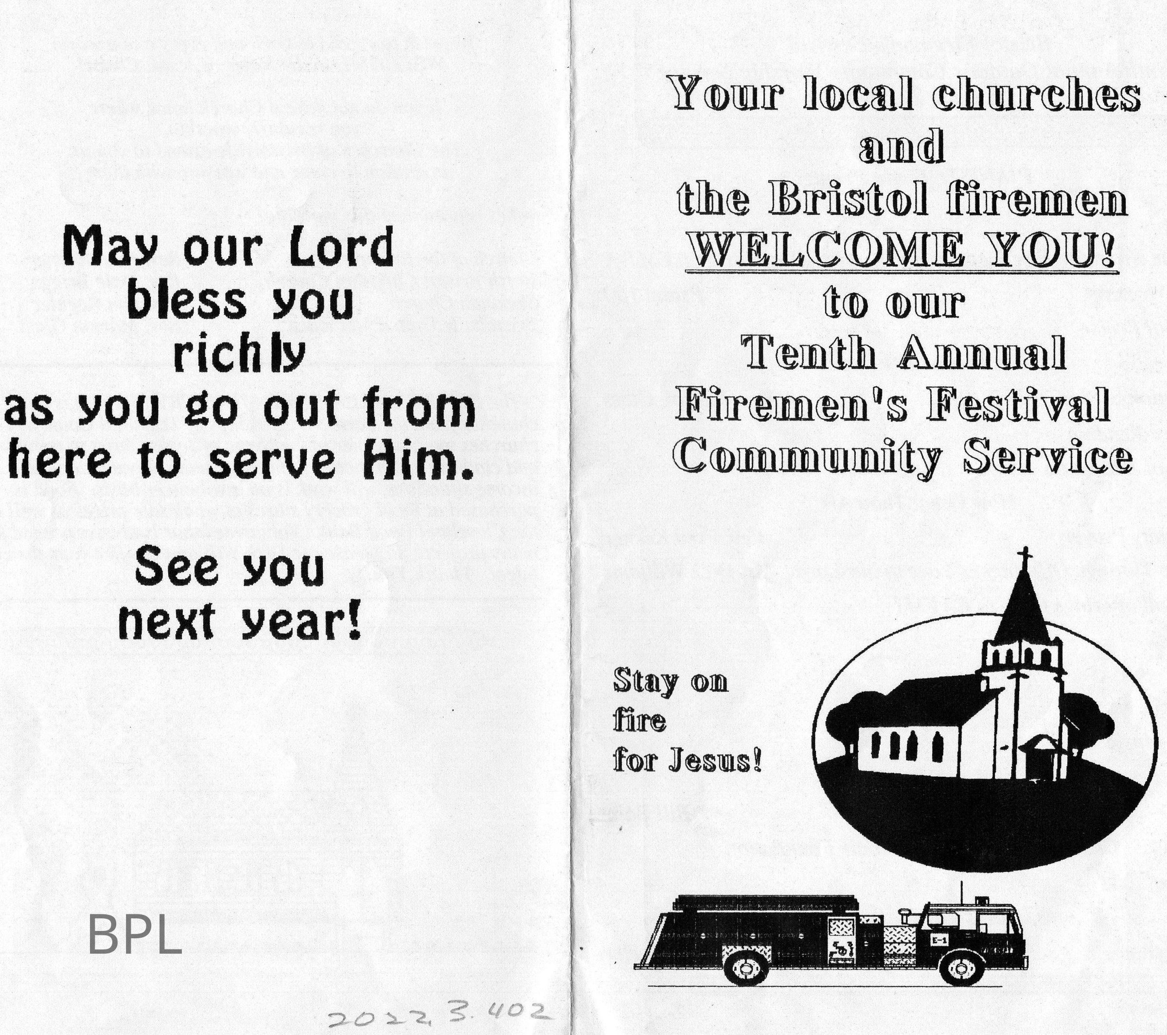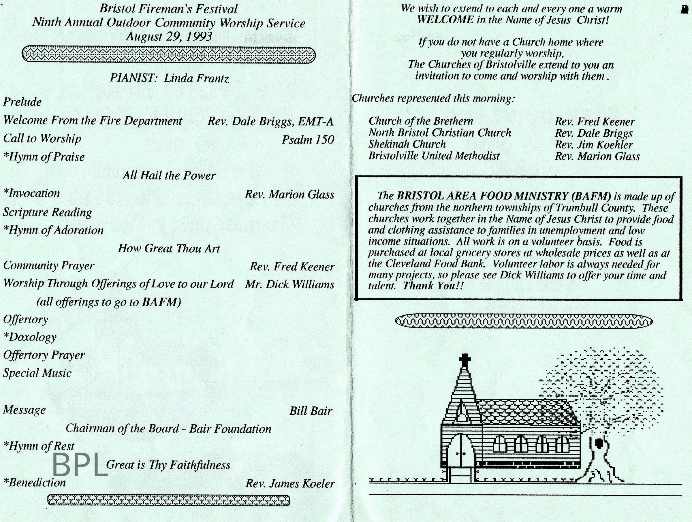 Bristol United Methodist Church, Bristolville Church of the Brethren, North Bristol Church, Shekinah Church, Briggs, Dale C. Rev, Keener, Fred Rev., Koehler, James L. Pastor, Glass, Marion Rev, Blair, Bill, Williams, Dick, Frantz, Linda