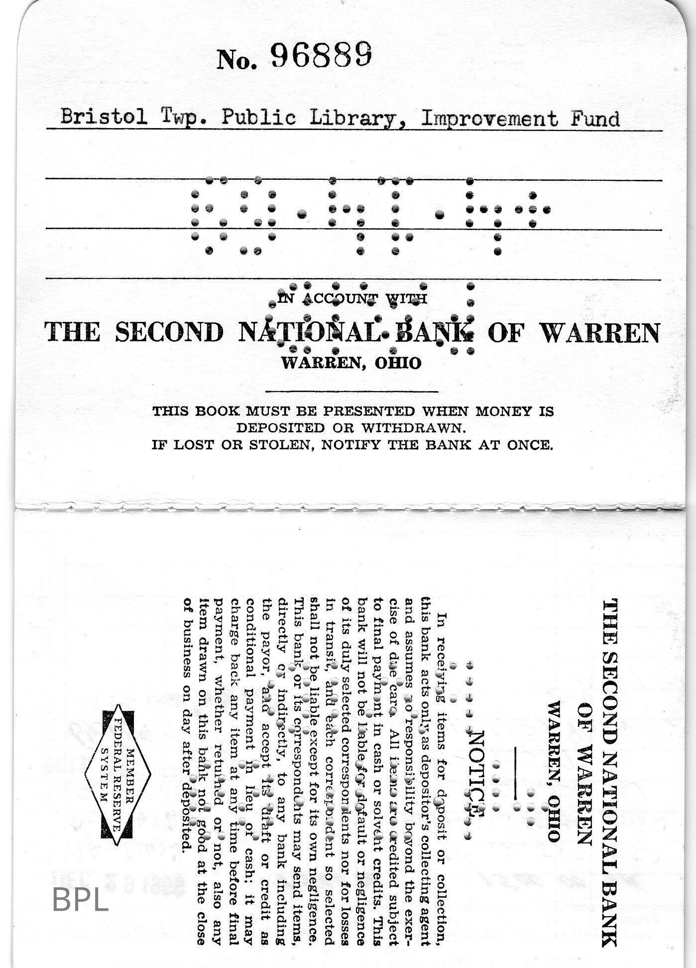 Bank book of Bristol Township Public Library for years 1966-1969 Improvement fund.Cataloged By