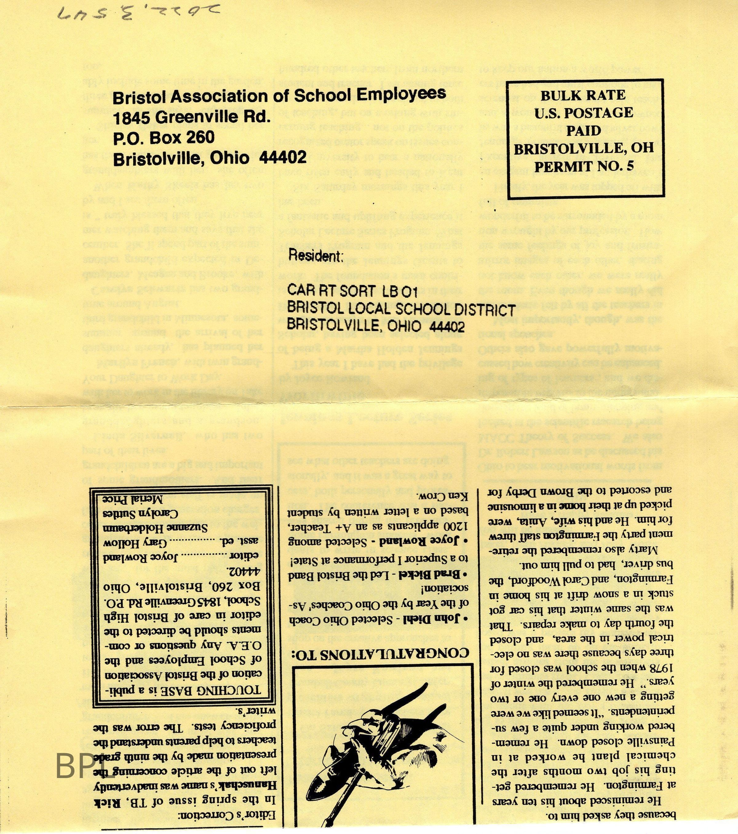 Mailer, Bristol School, 1994Cataloged By
