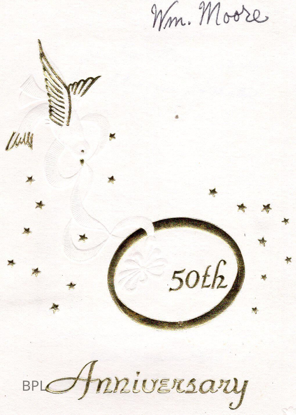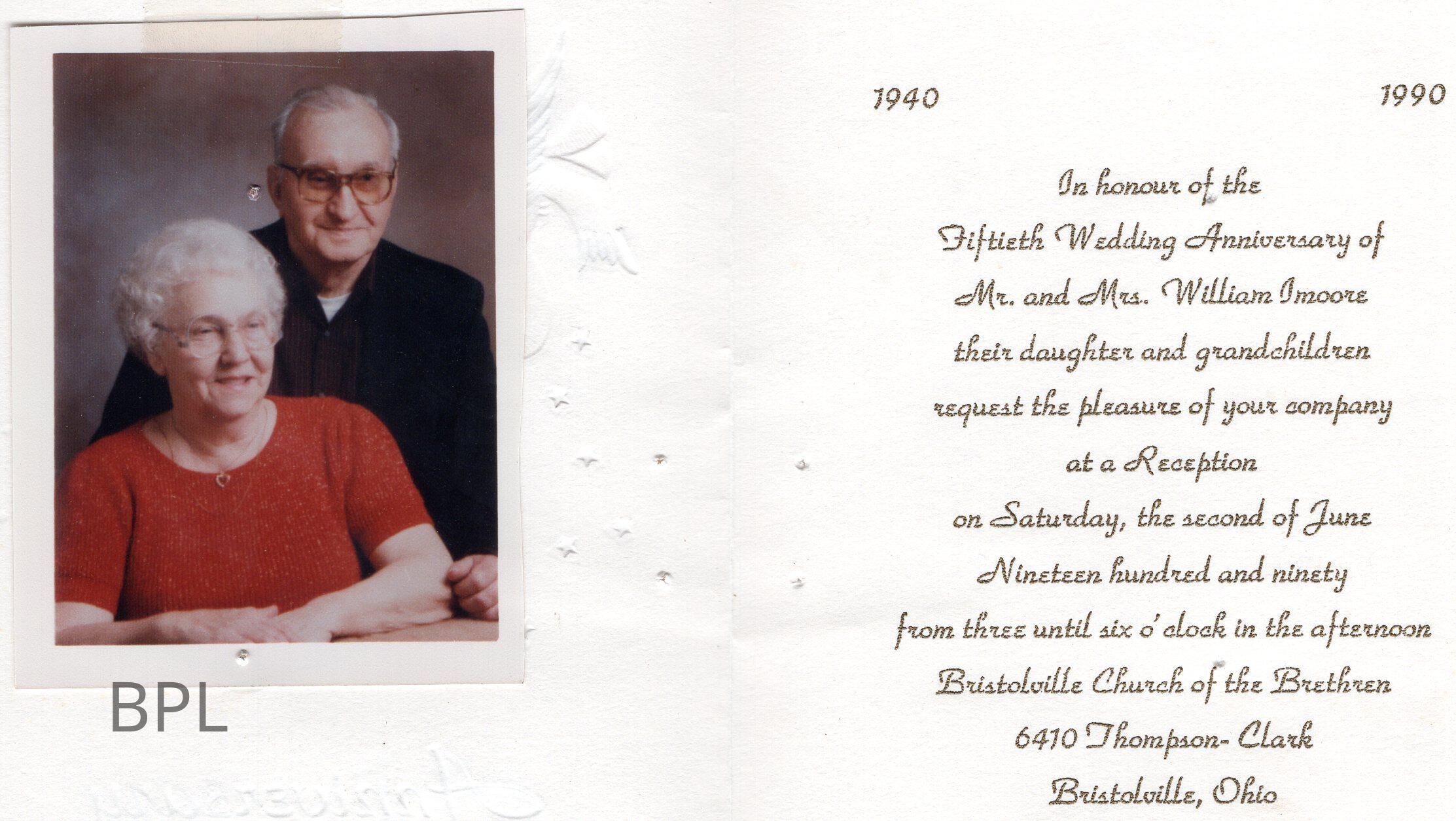 50th wedding anniversary invitation for Mr. and Mrs. William Moore given by daughter and grandchildren, June 2, 1990Cataloged By