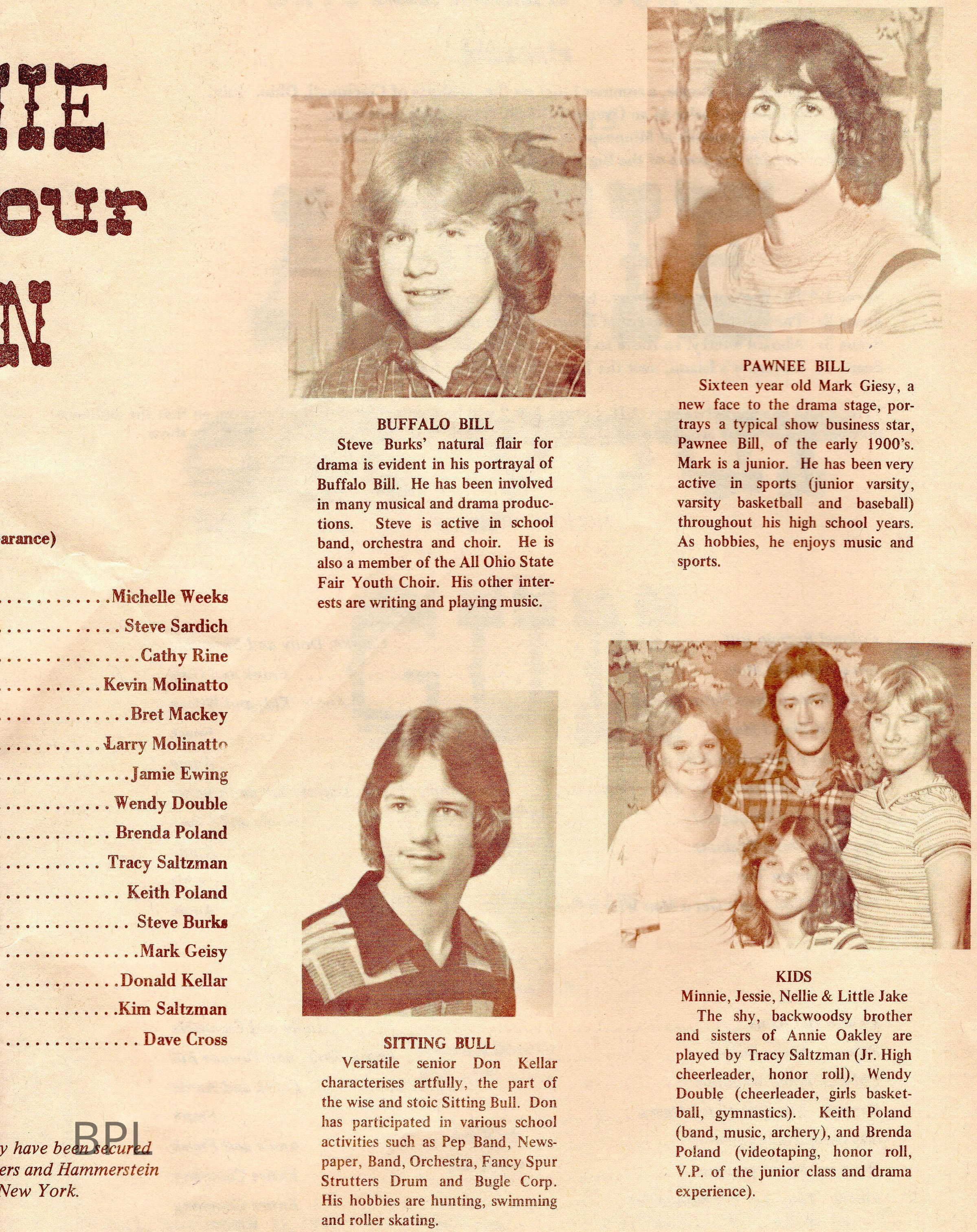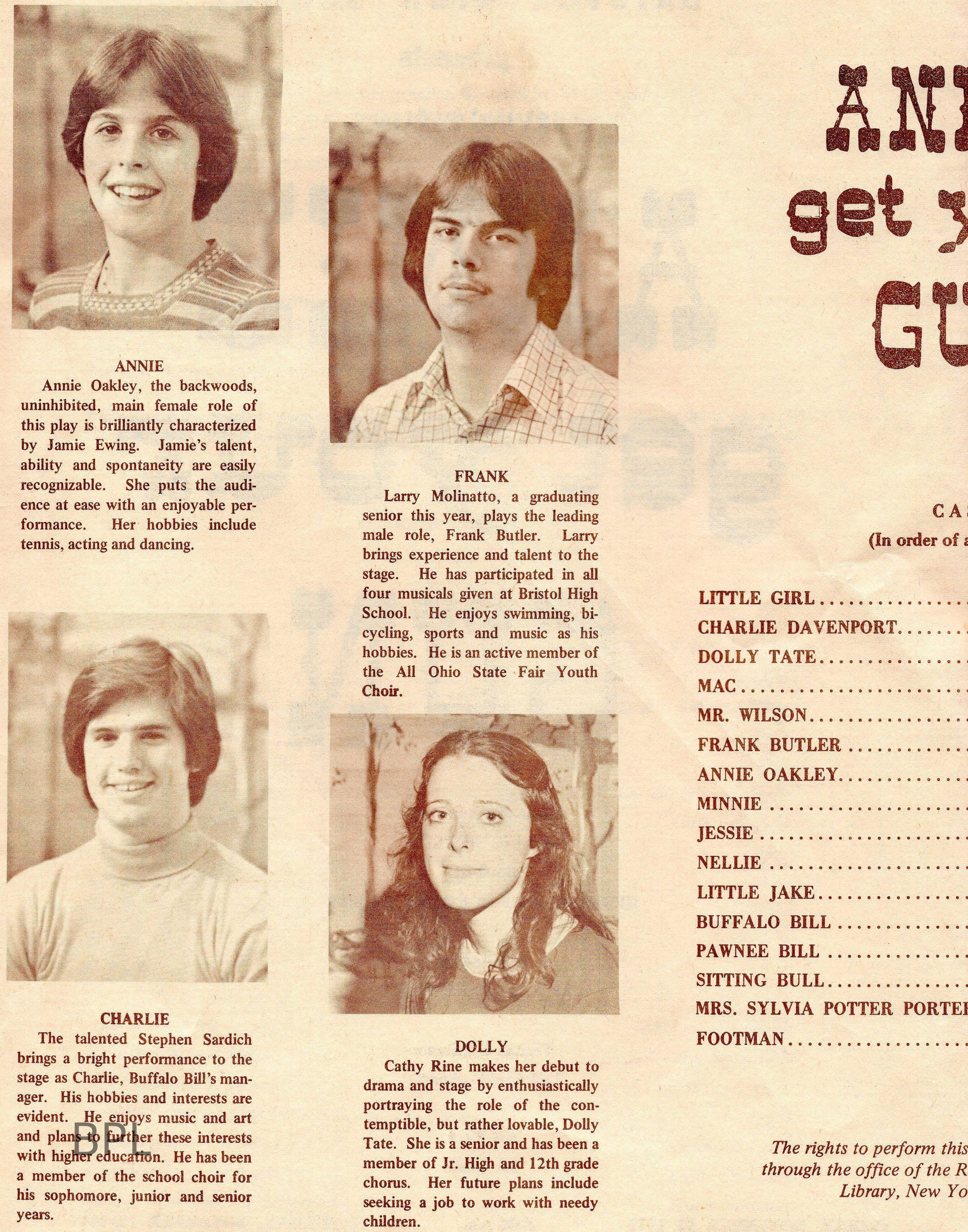 Bristol School Play, " Annie Get Your Gun" November 12, 1977