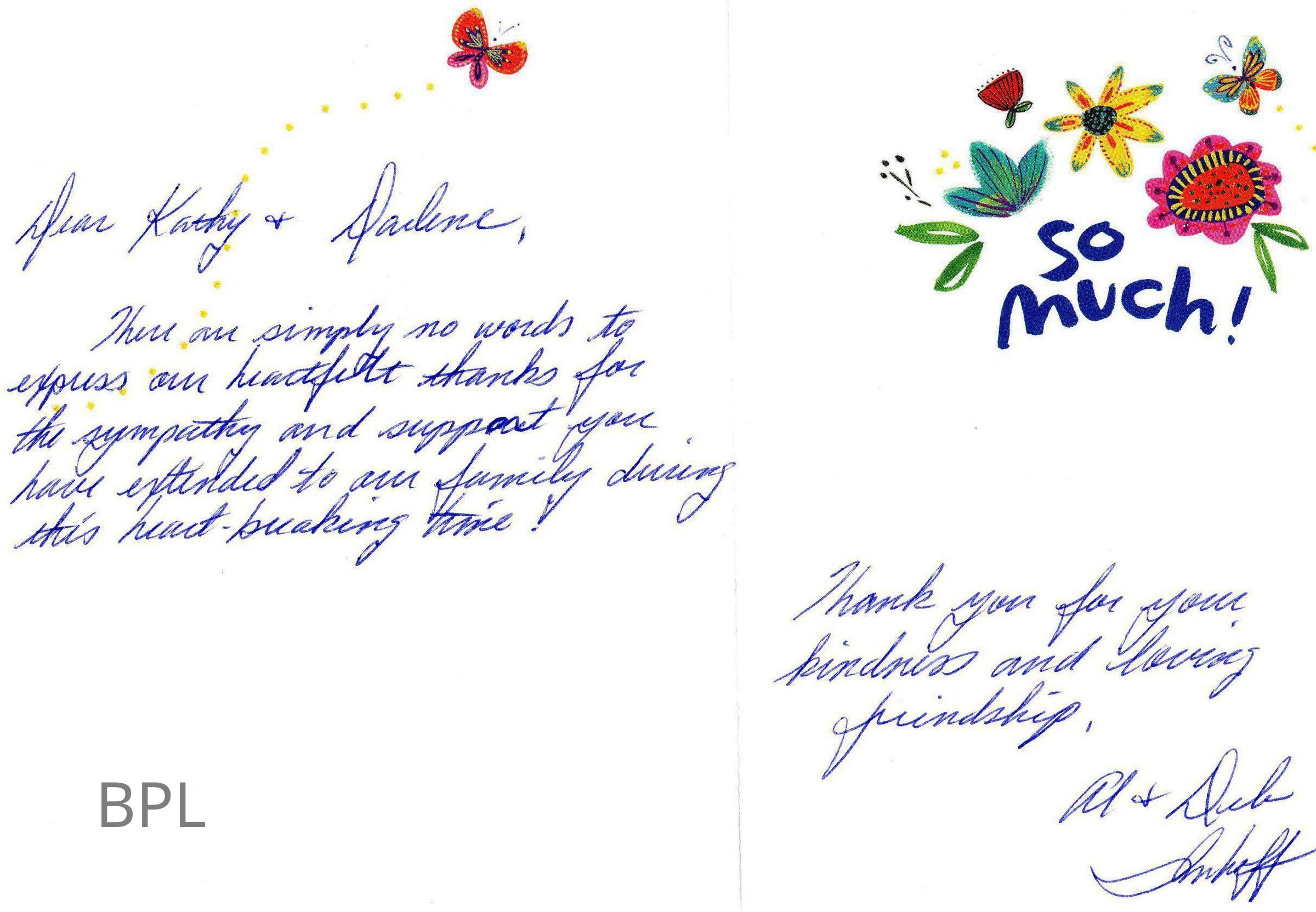 Envelope and Thank You Card from Deborah Imhoff Former Library Staff Member on the Death of her SonCataloged By