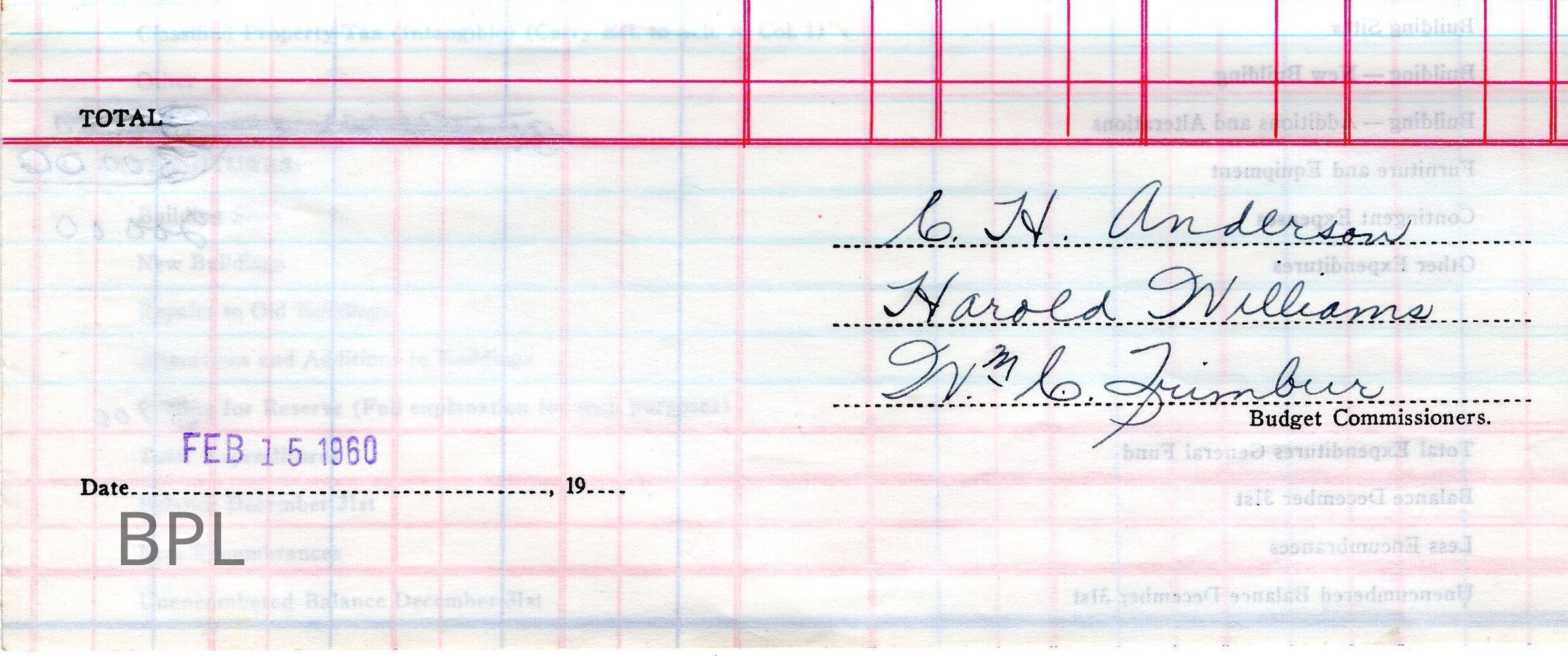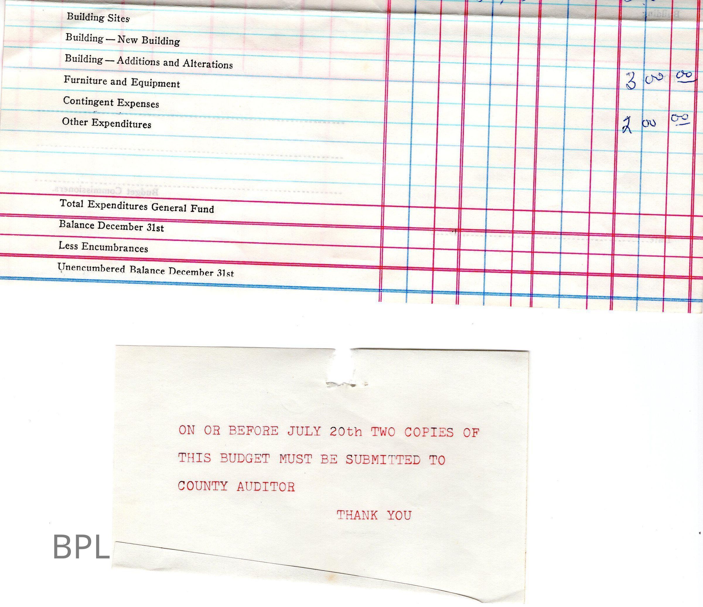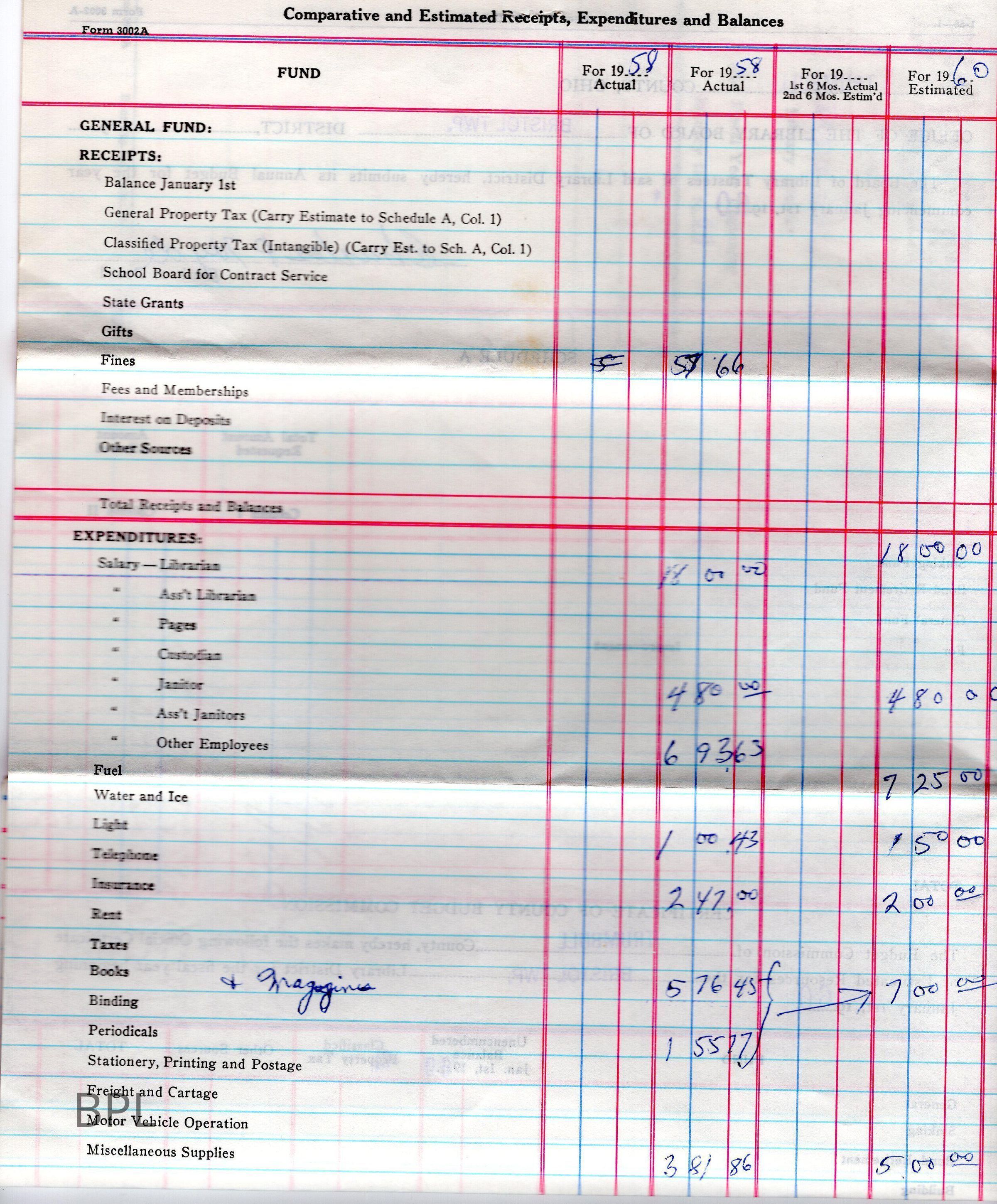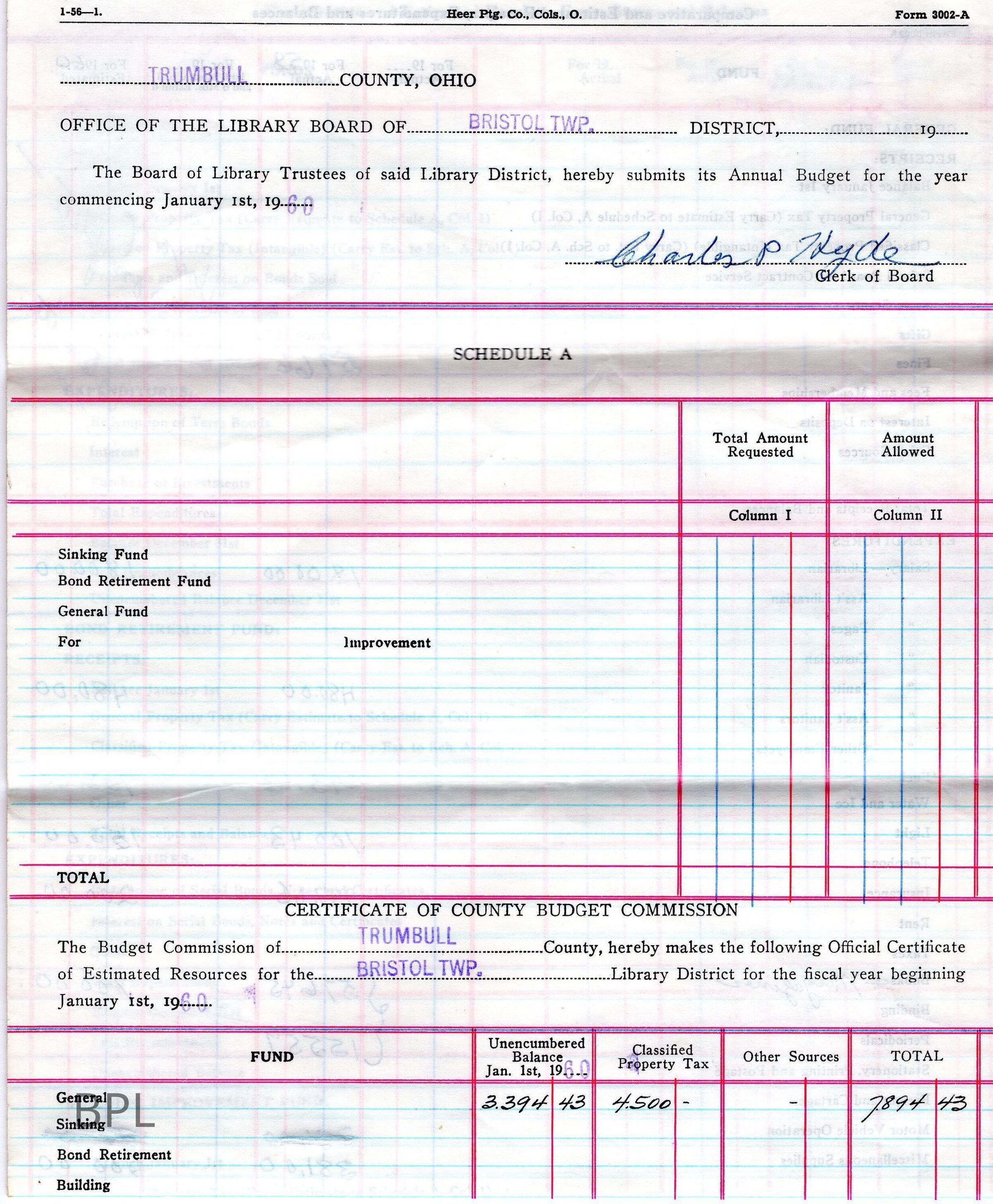 The annual budget of 1960 submitted to Trumbull County, Ohio for Bristol LibraryCataloged By