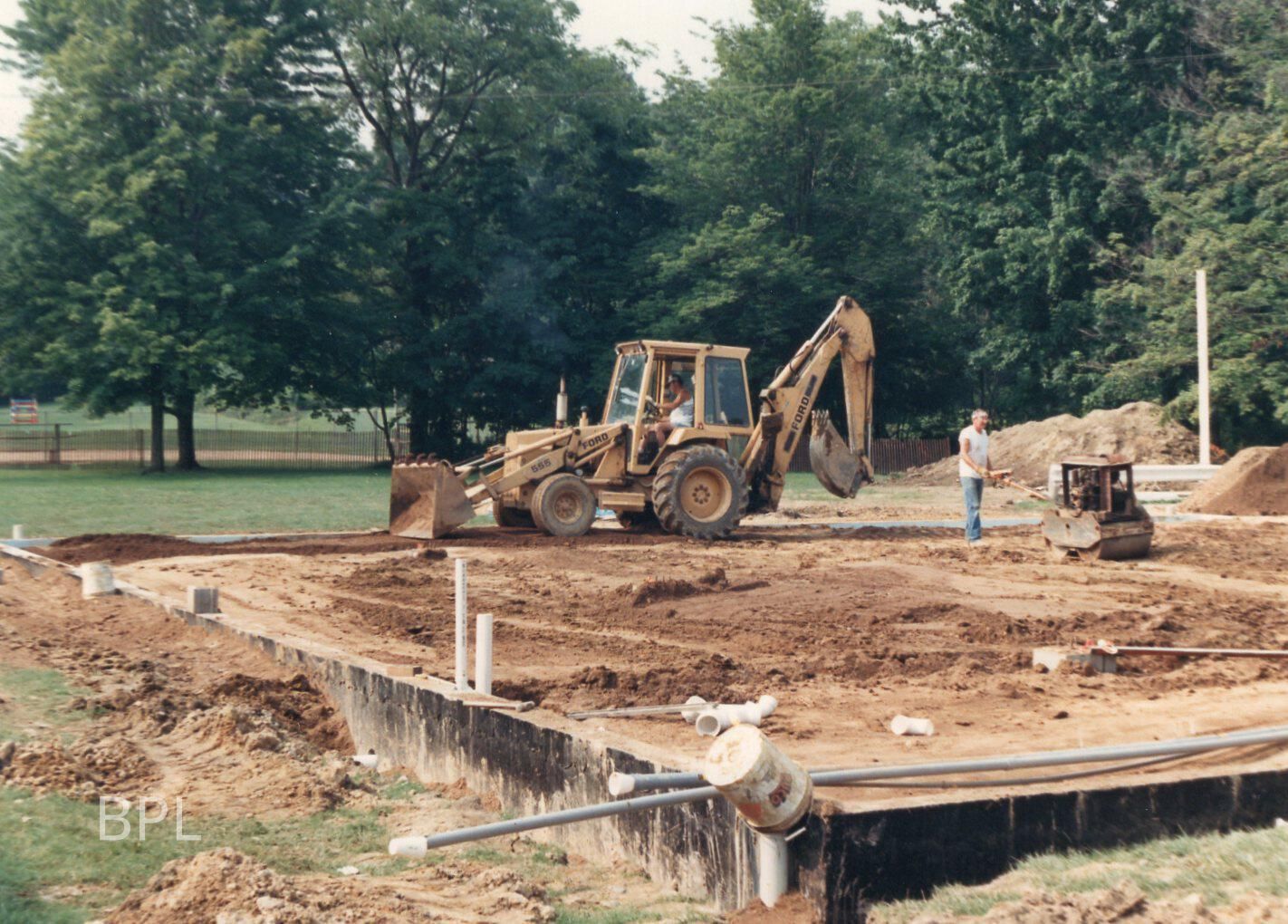 Bristol Public Library photo during addition construction,1987Cataloged By