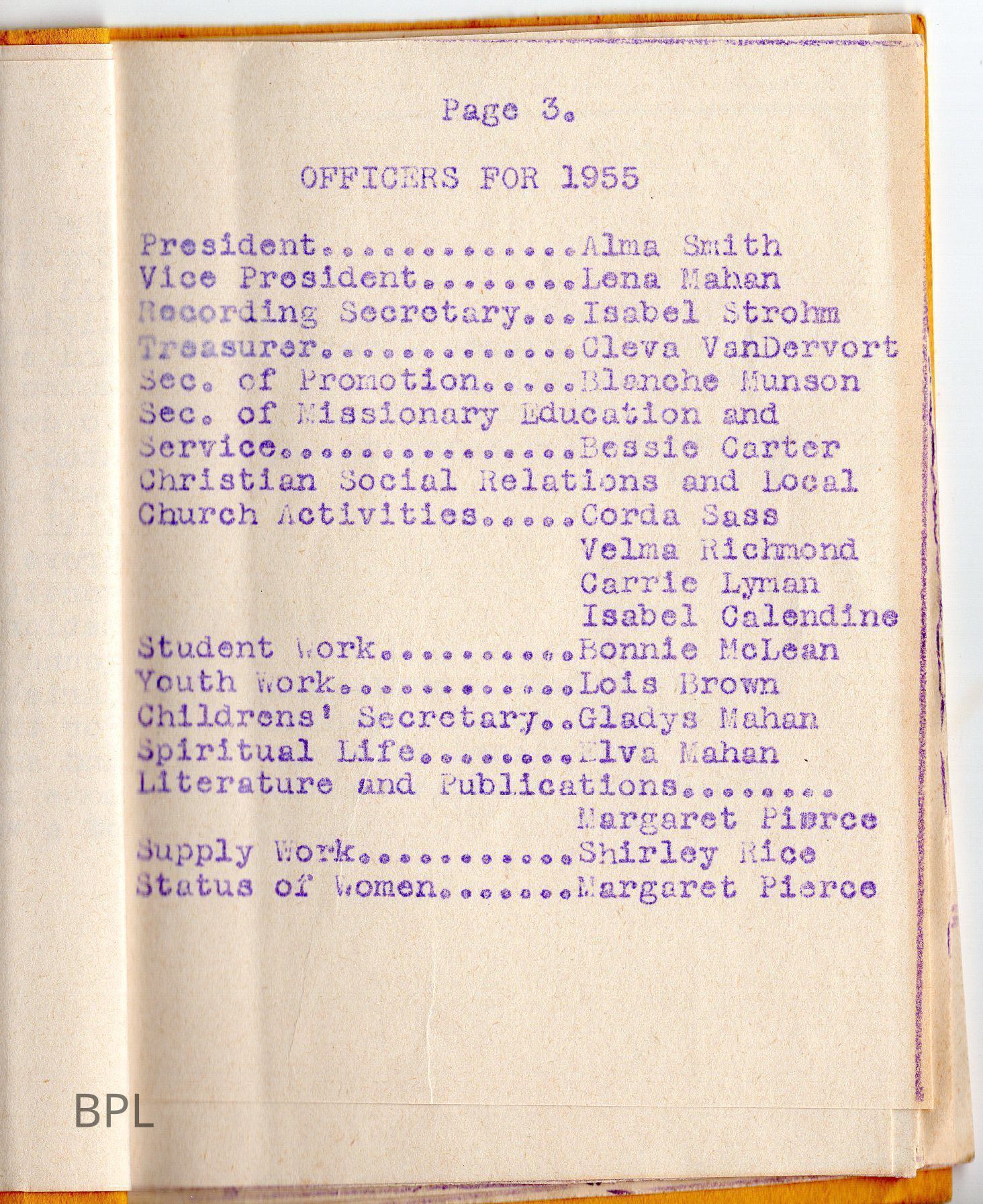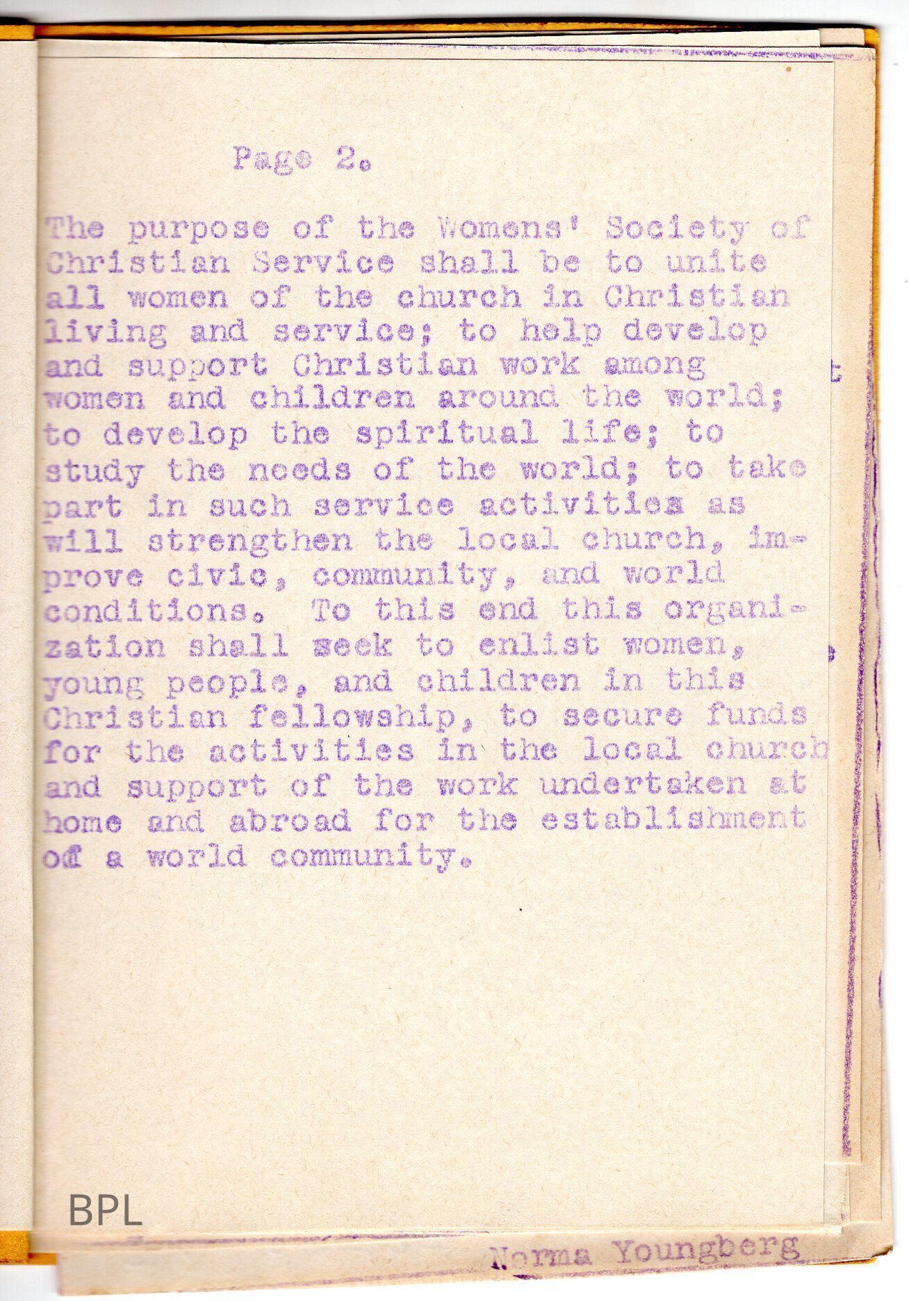 Bristolville Methodist Church, Women's Society of Christian Service, Smith , Alma, Mahan, Lena, Strohm, Isabel, VanDervort, Cleva, Munson, Blanche, Carter, Bessie, Sass, Corda, Richmond, Velma, Lyman, Carrie, Calendine, Isabel, McLean, Bonnie, Brown, Lois Jean, Mahan, Gladys, Mahan, Elva, Pierce, Margaret, Rice,Shirley