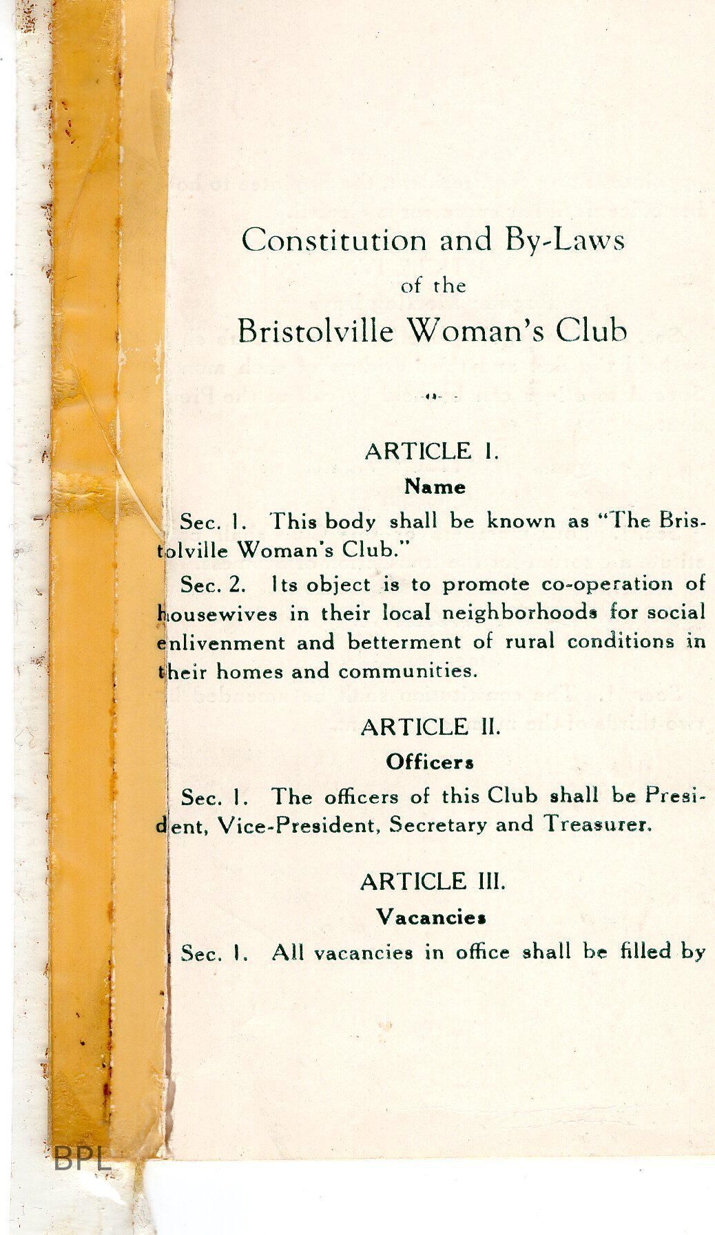 Bristolville Woman's Club's Constitution and By-LawsCataloged By