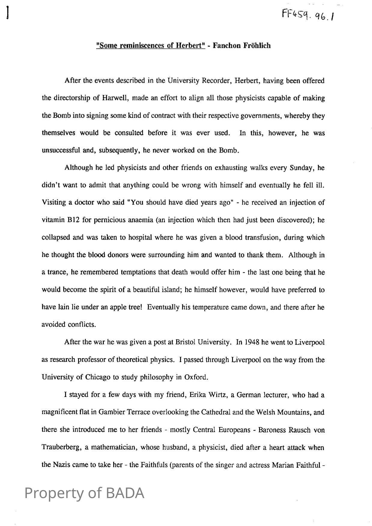 FF459.96 - Reminiscences of HerbertEntry/Object ID