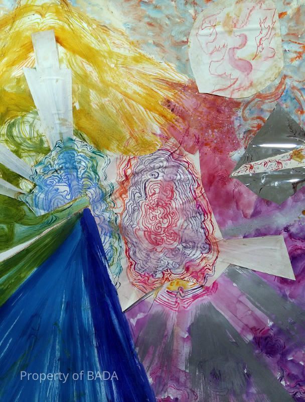 Watercolour and glued note paper with earlier graphic motif & news PrintArtwork Details