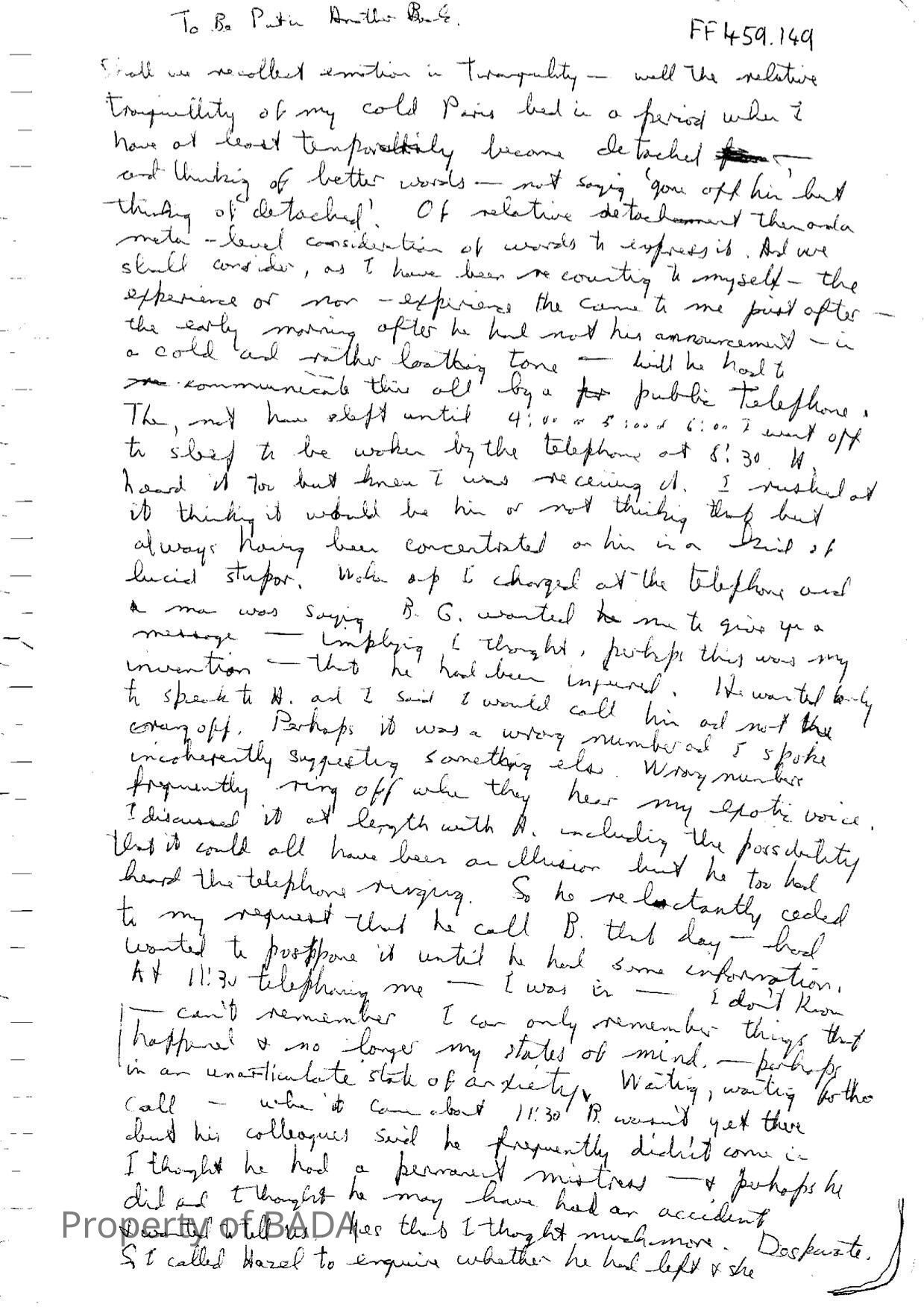 FF459.149 - Manuscript -'to be put in another body'Entry/Object ID