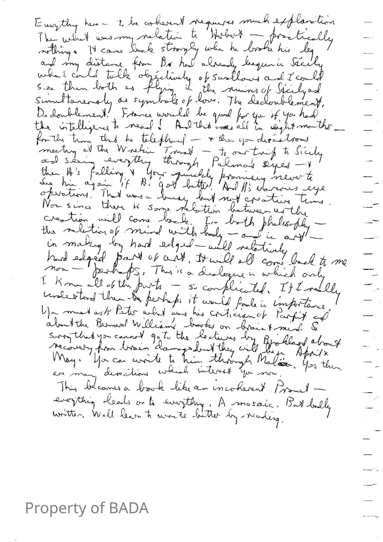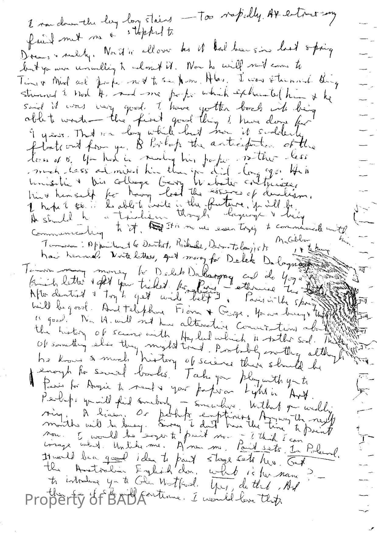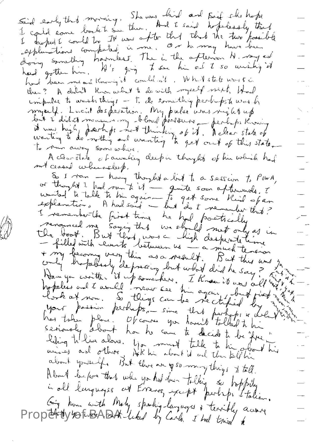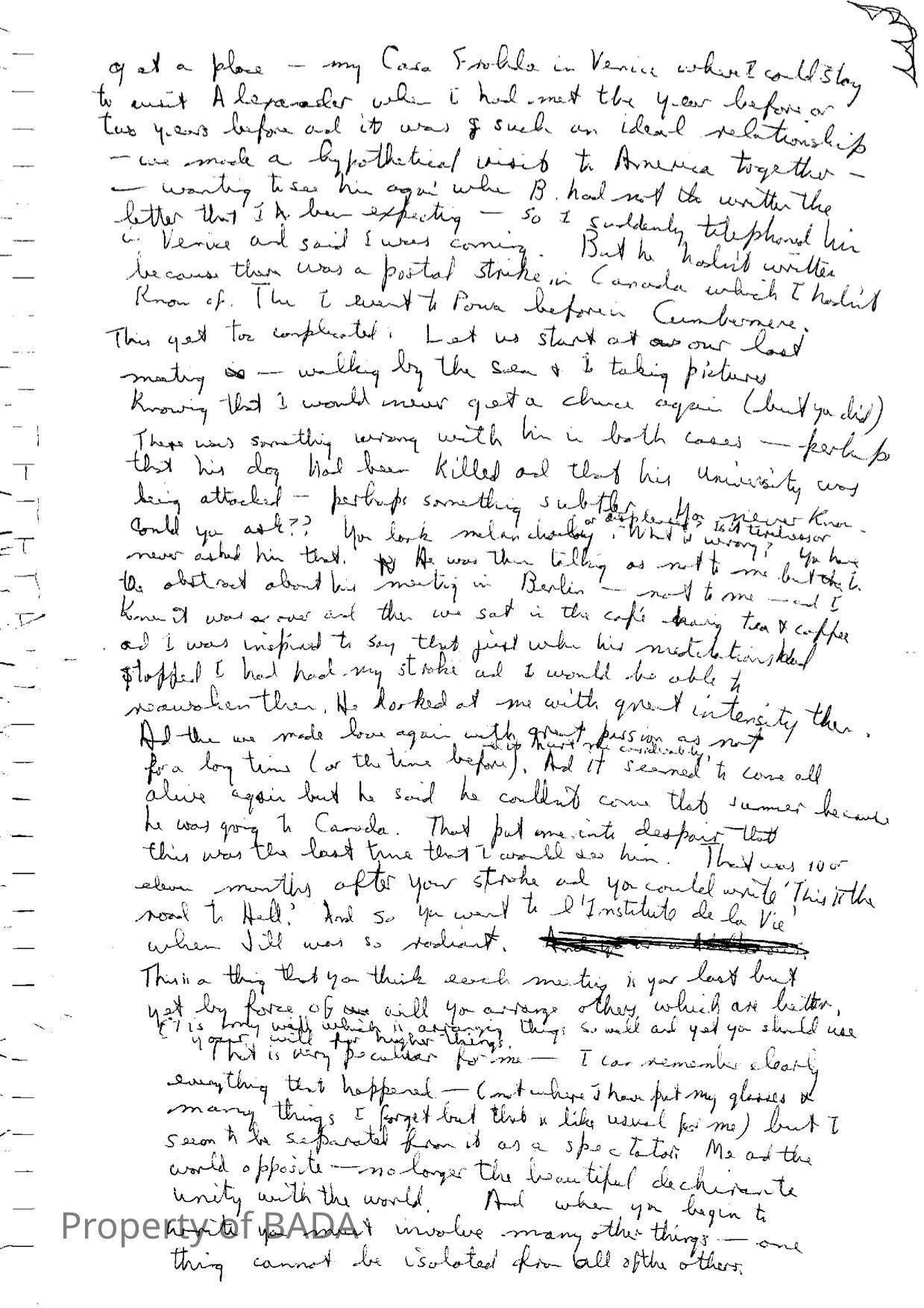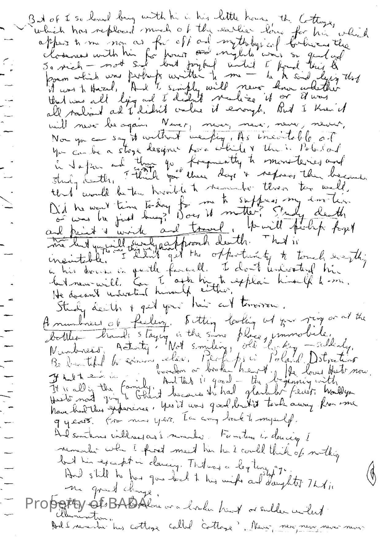 Manuscript in which Fanchon poders detachment -'to be put in another body'Who