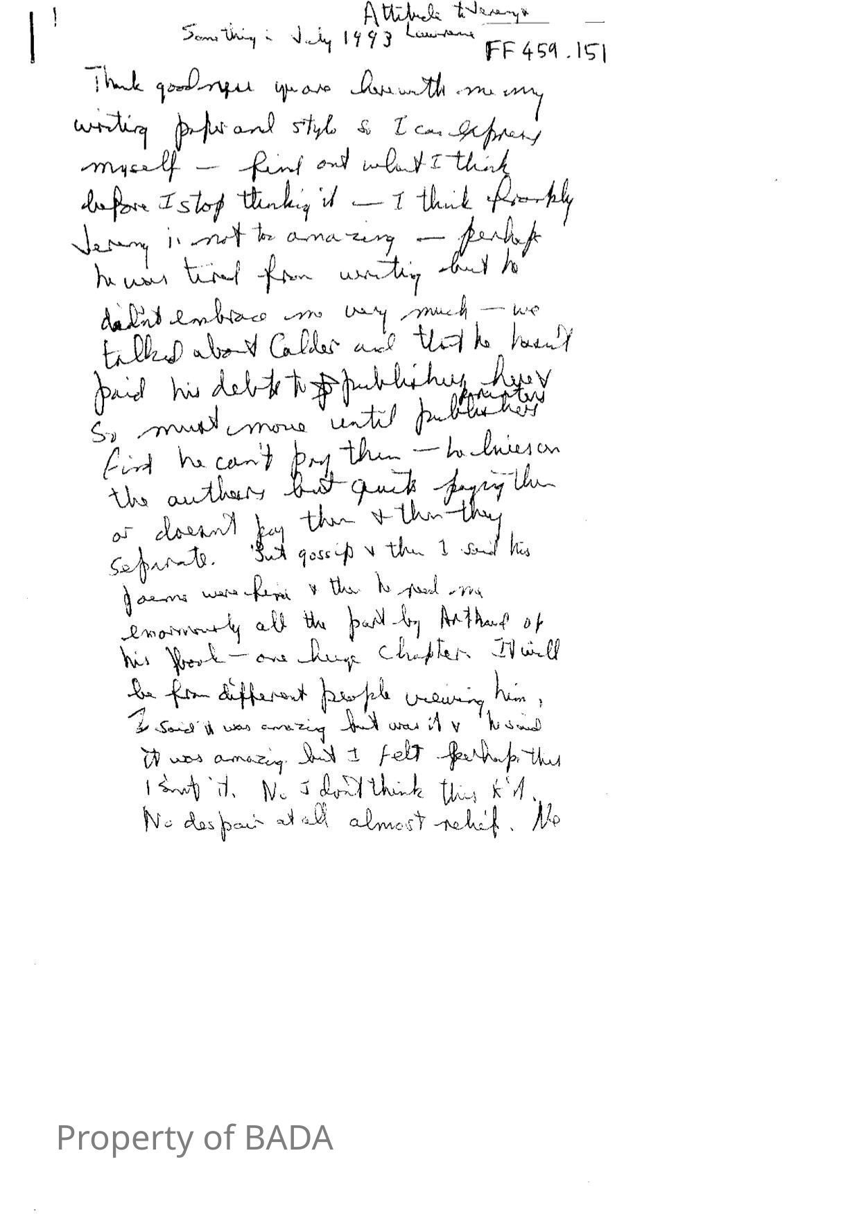 FF459.151 - Note - 'Attitude' to Jeremy and Lawrence'Entry/Object ID