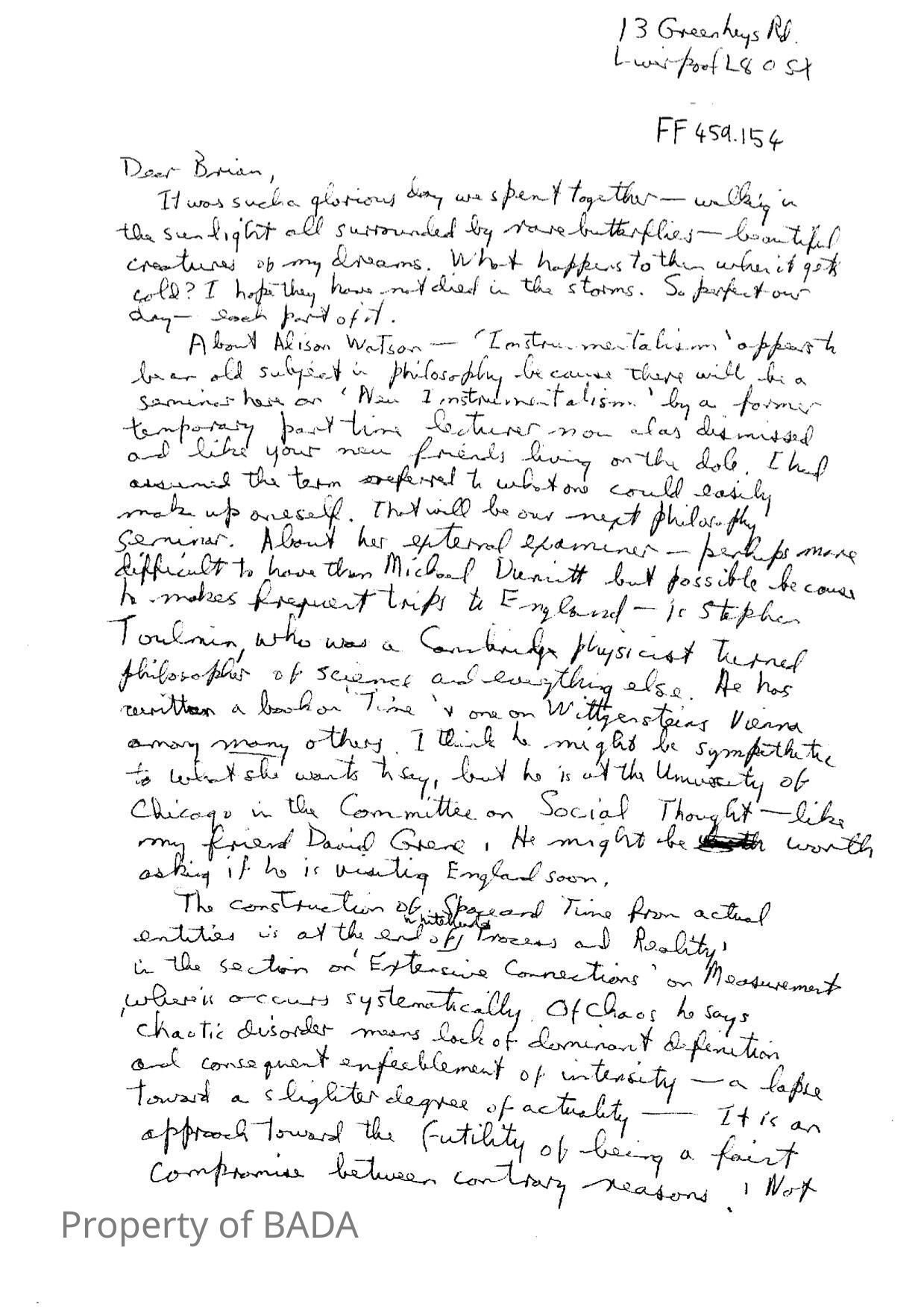 FF459.154 - Draft letters from Fanchon to BrianEntry/Object ID