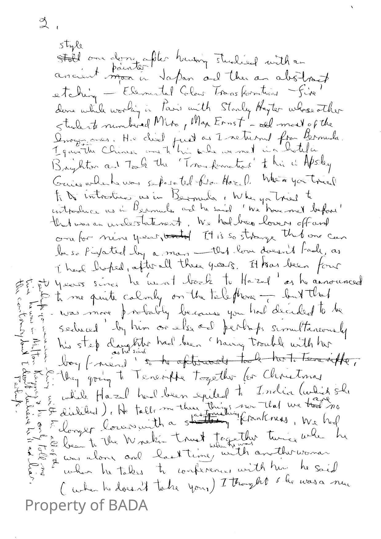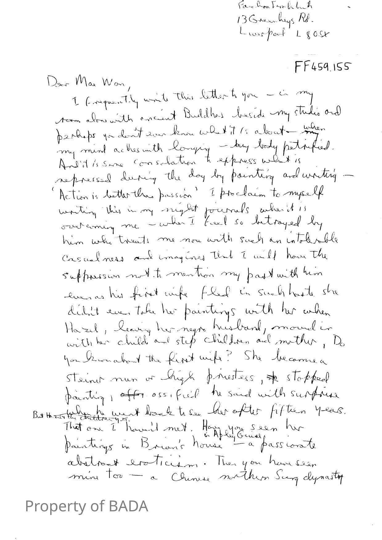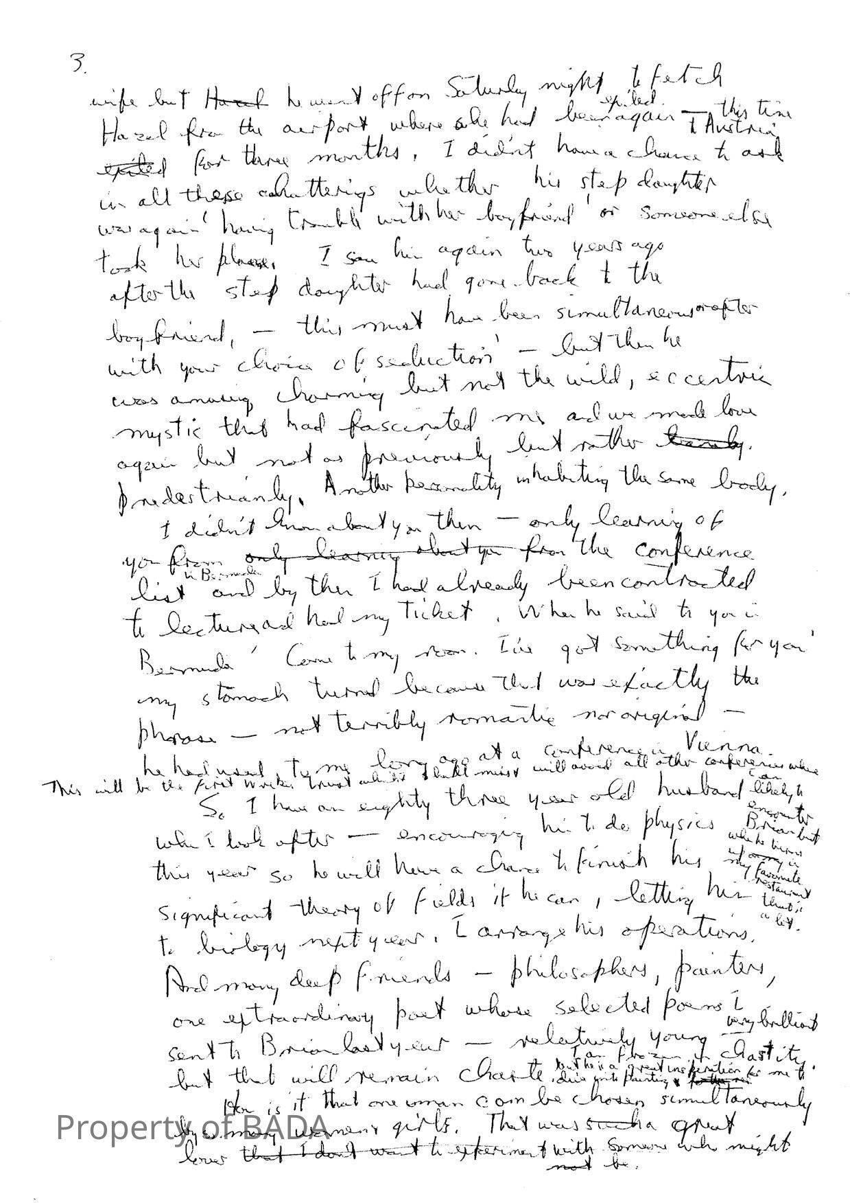 Draft letter from Fanchon to Mai Wan in which she states she and Brian had been lovers for 9 yearsWho