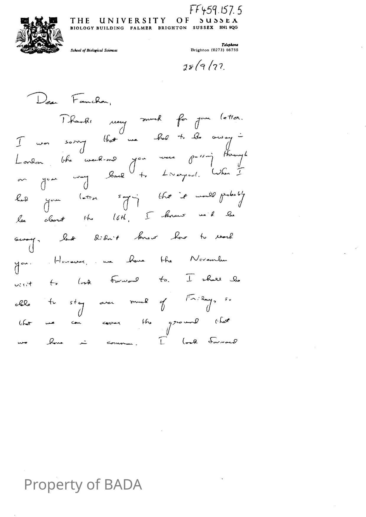 FF459.157.5 - Numerous letters to Fanchon from BrianEntry/Object ID