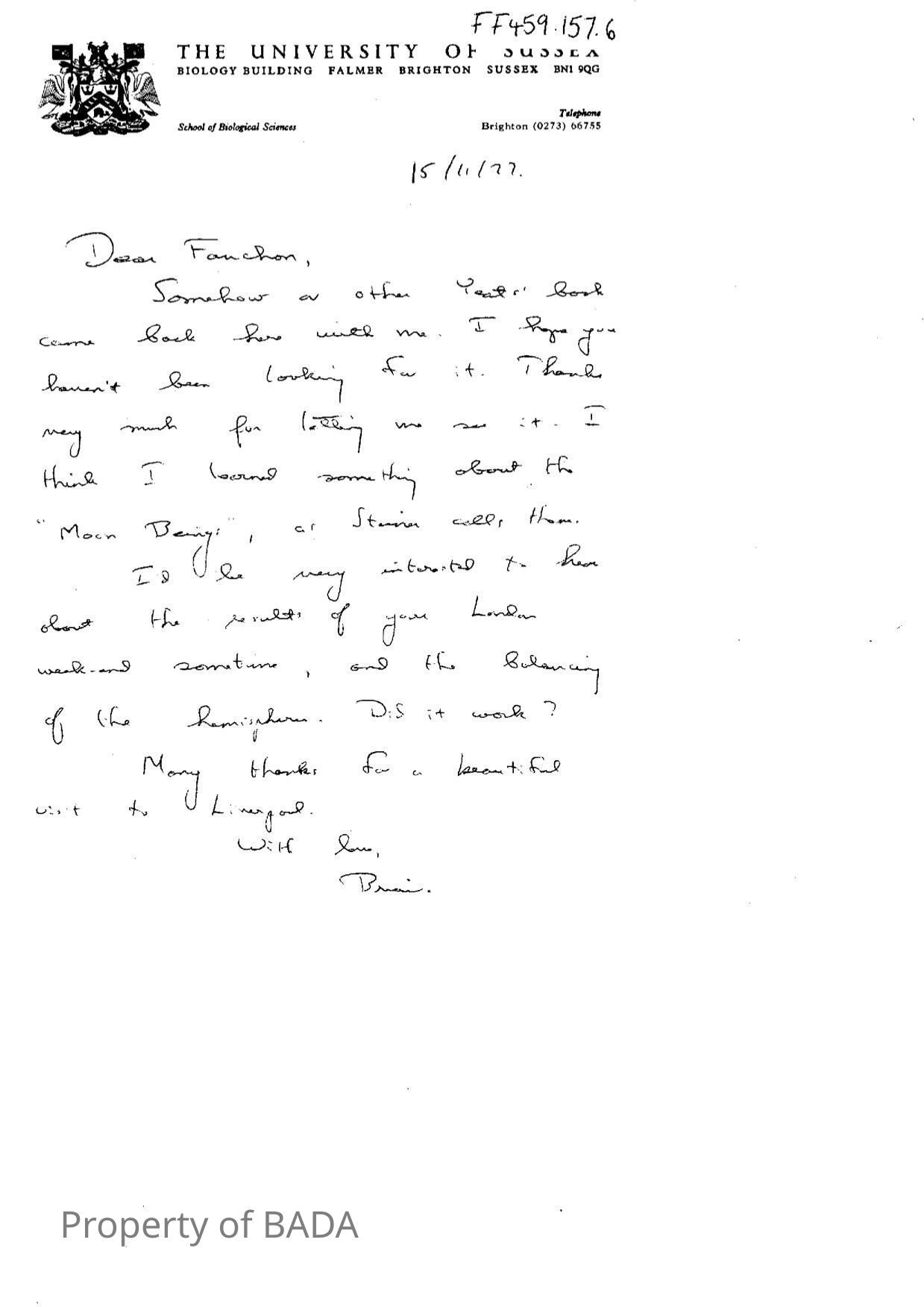 FF459.157.6 - Numerous letters to Fanchon from BrianEntry/Object ID