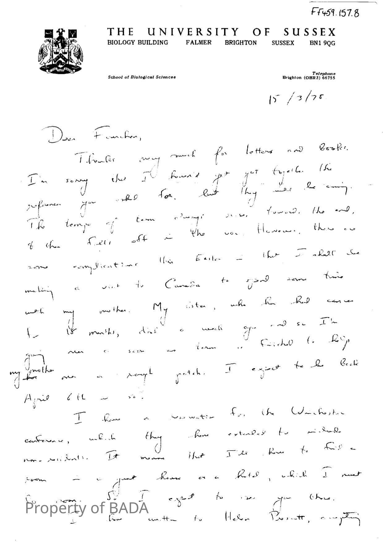 FF459.157.8 - Numerous letters to Fanchon from BrianEntry/Object ID