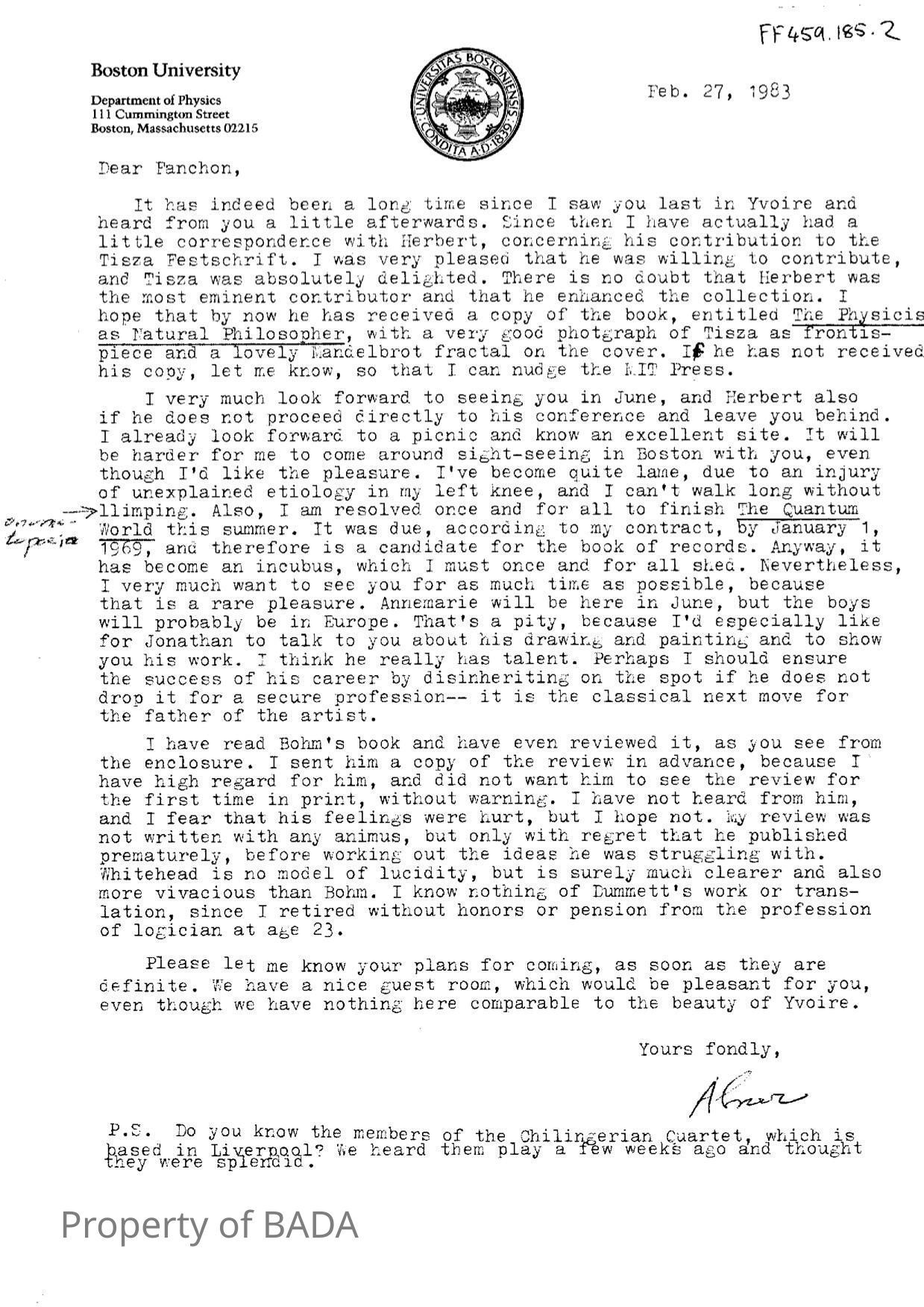 FF459.185.2 - Letters to Fanchon from Abner on Dept of Physics notepaperEntry/Object ID