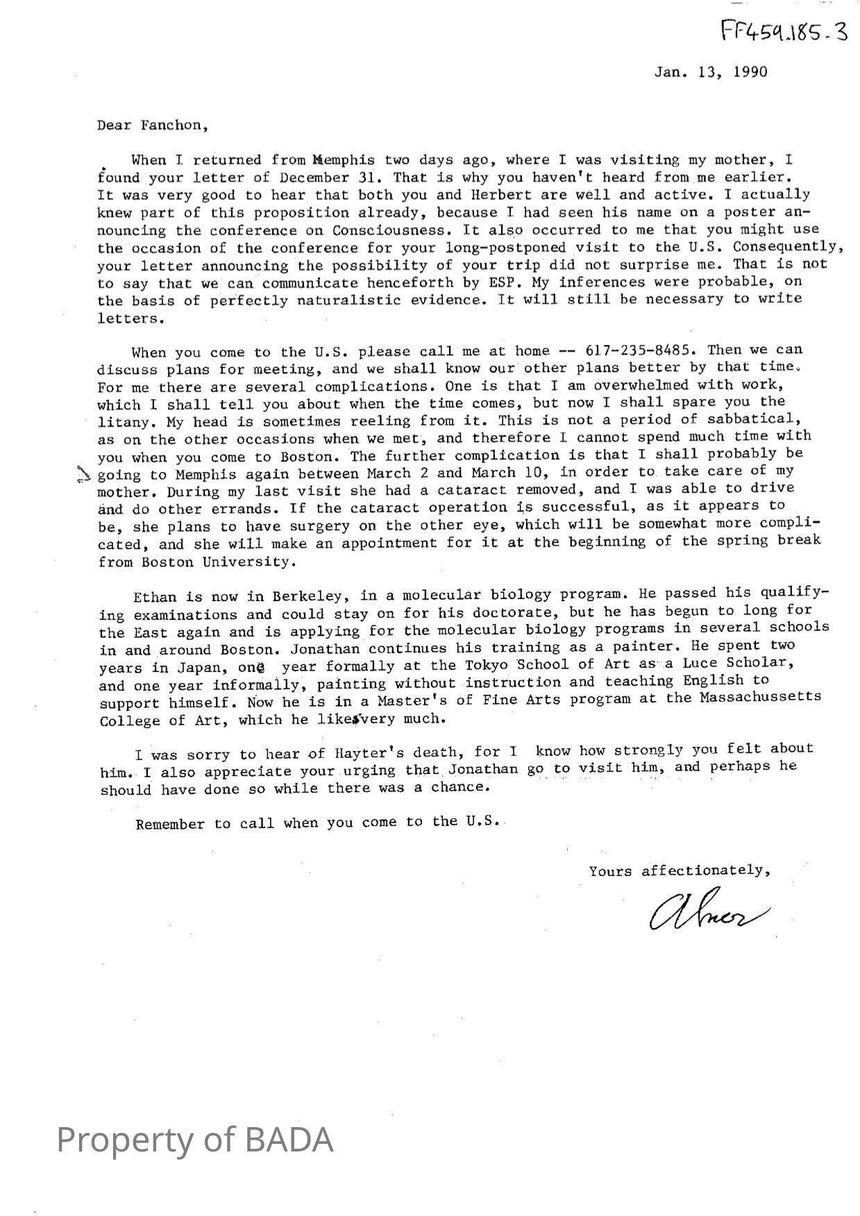 FF459.185.3 - Letters to Fanchon from Abner on Dept of Physics notepaperEntry/Object ID