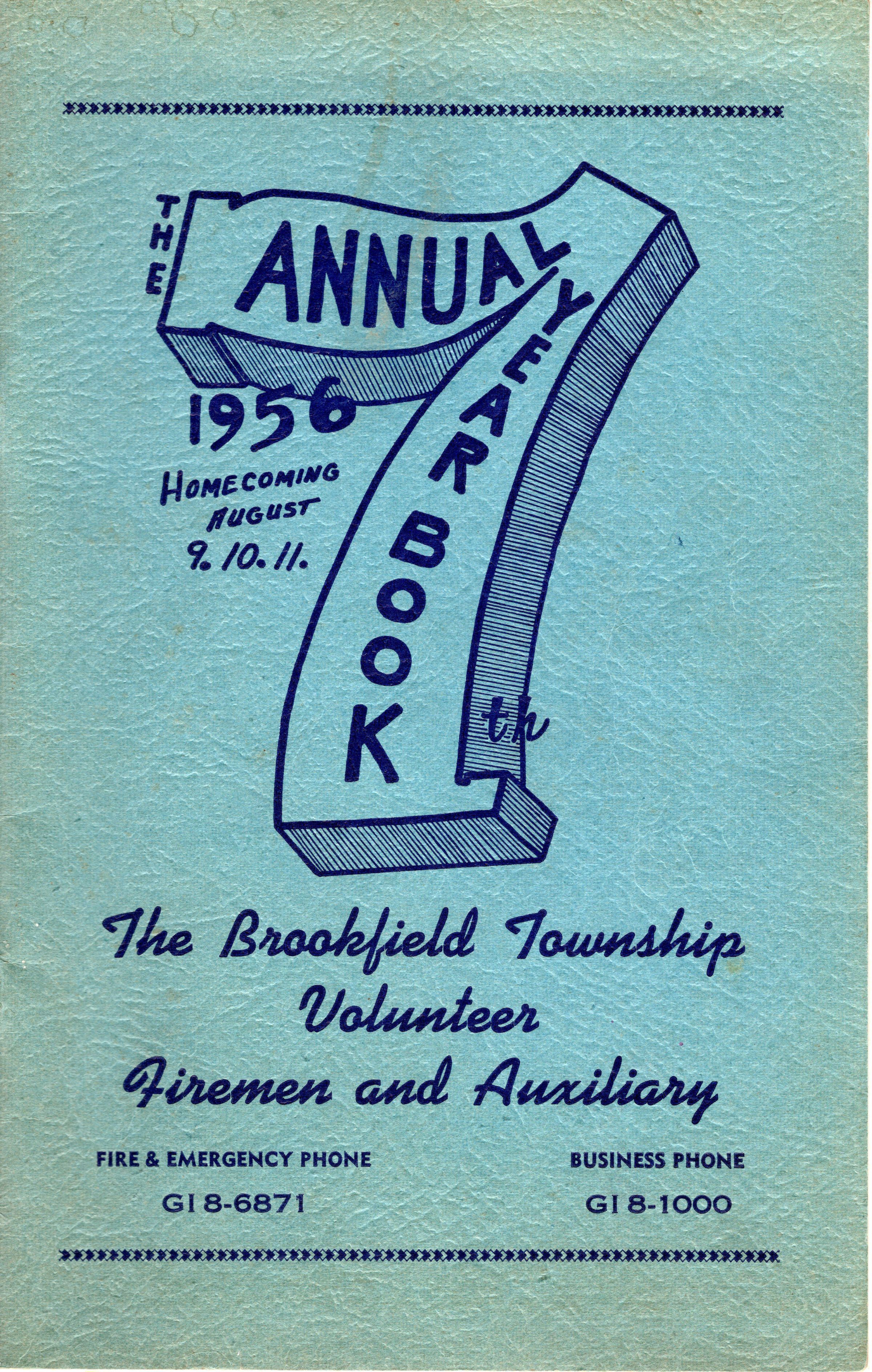 Brookfield Twp. Volunteer Firemen and Auxiliary 7th annual yearbook, 1956.