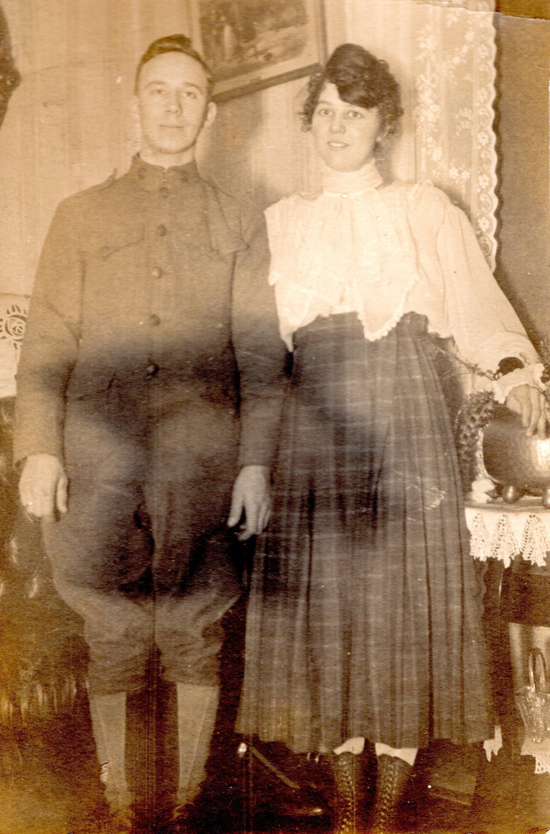 Postcard of Charles Kidd in uniform with unidentified woman